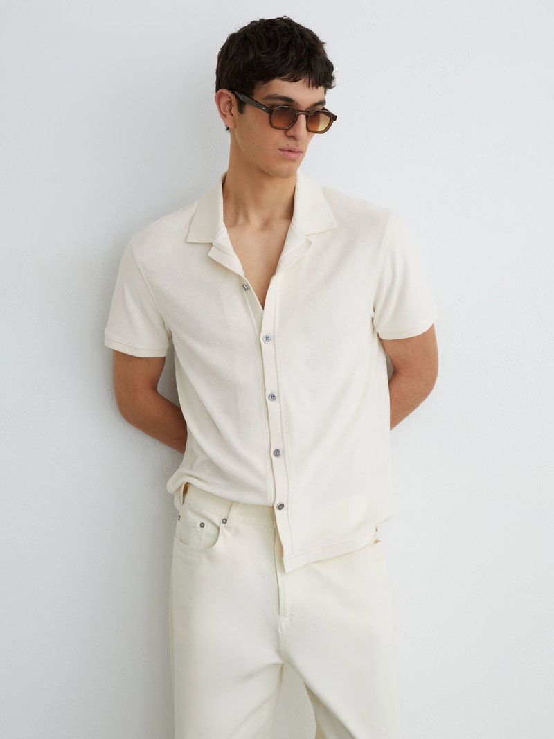 Towelling Short-Sleeve Shirt In White