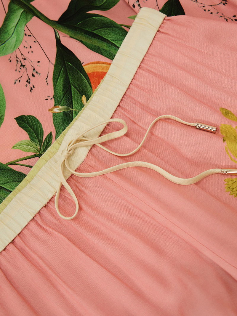 The wide-leg Milos trousers are crafted from soft, fluid fabric with a subtle sheen, featuring a vibrant tropical scarf print and finished with a drawstring waistband. Tropical scarf-style print Wide leg Striped hems Elasticated drawstring waist Side slip pockets Back welt pocket .