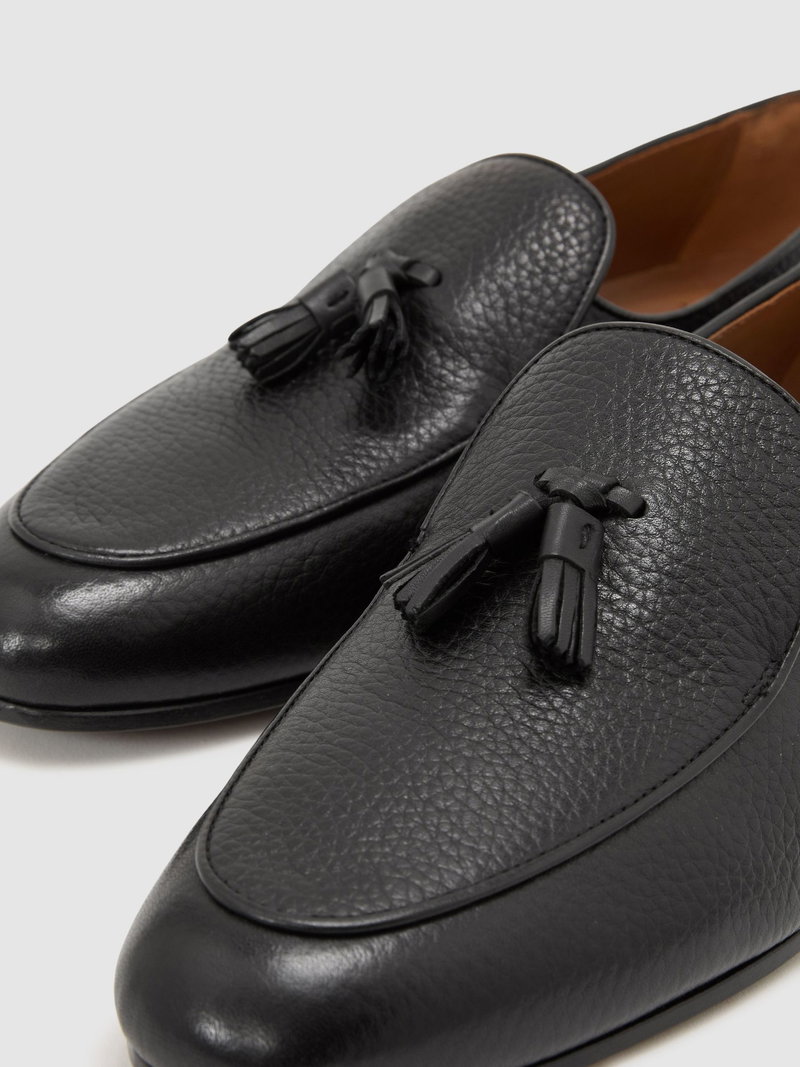 Tumbled-Leather Tassel-Detail Loafers In Black