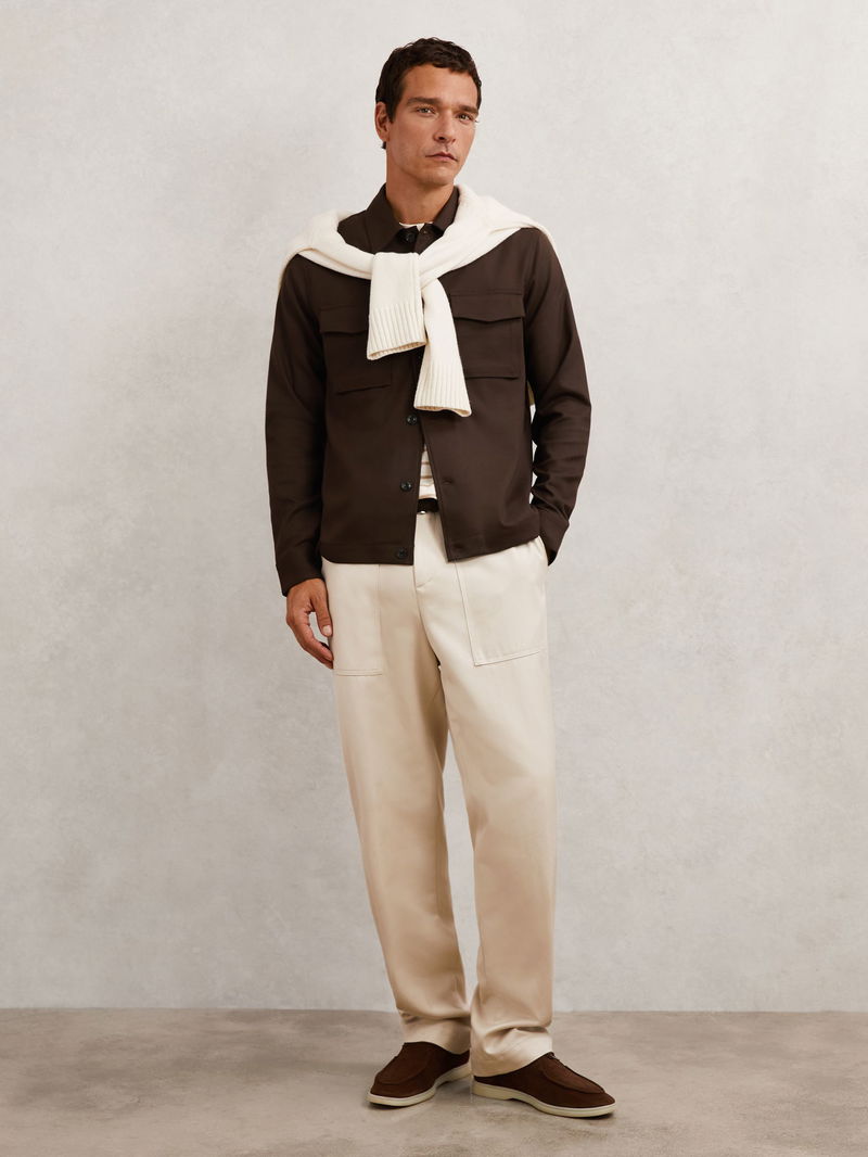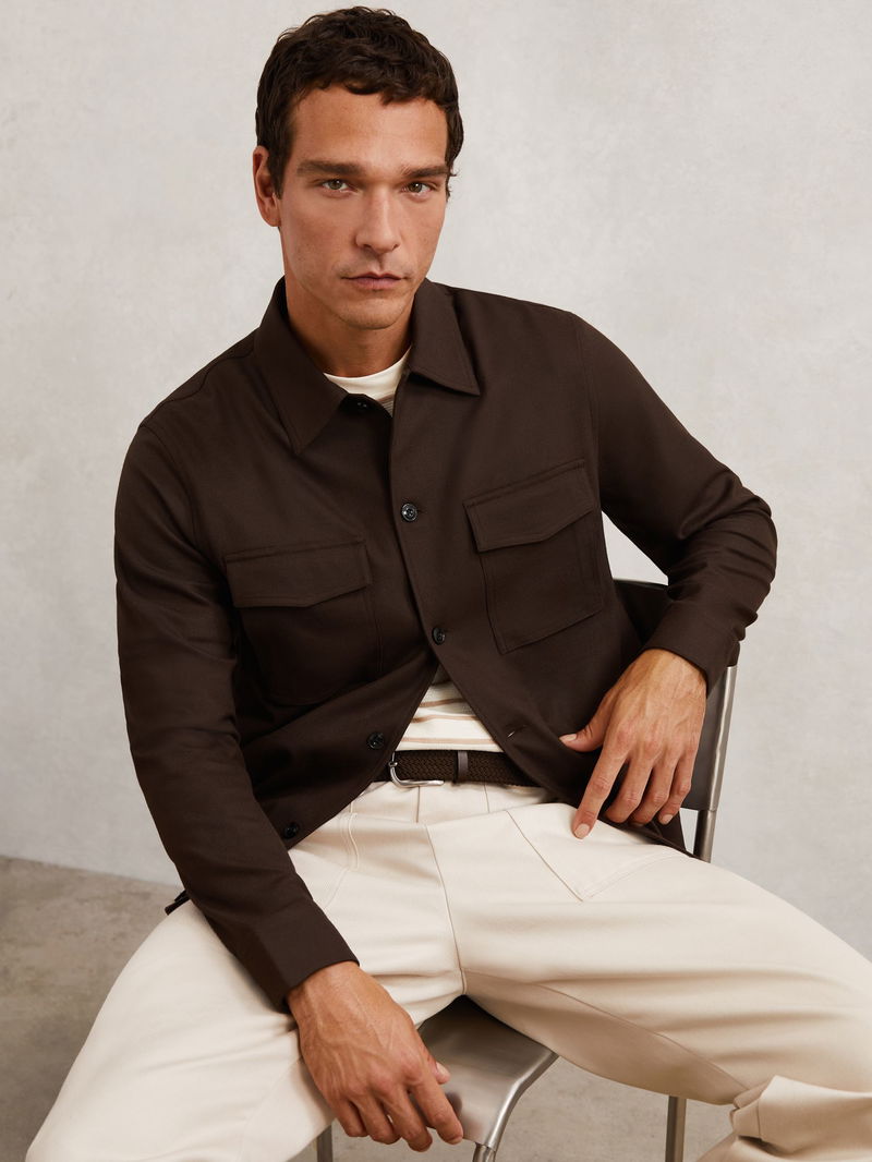 Twill Twin-Pocket Overshirt In Tobacco Brown