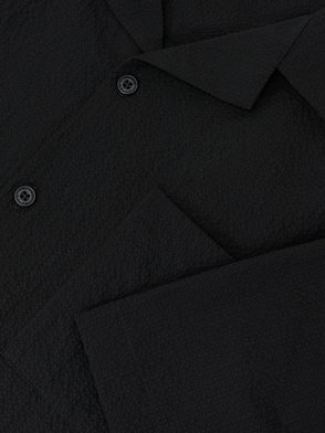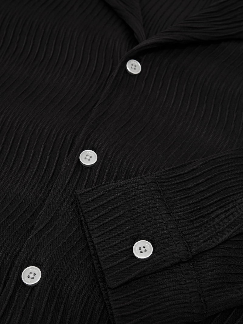 Wave-Jacquard Cuban-Collar Shirt Regular-Fit In Black