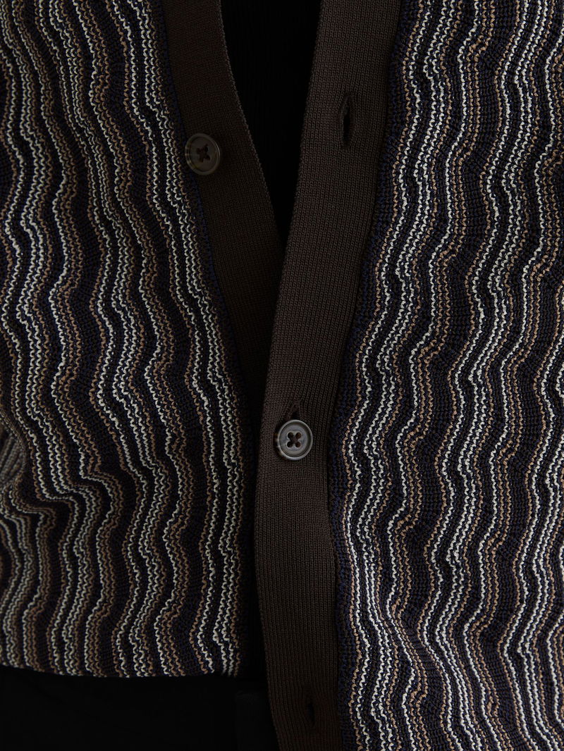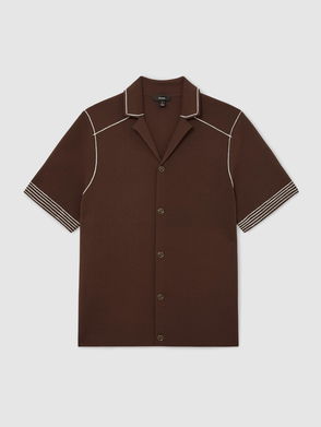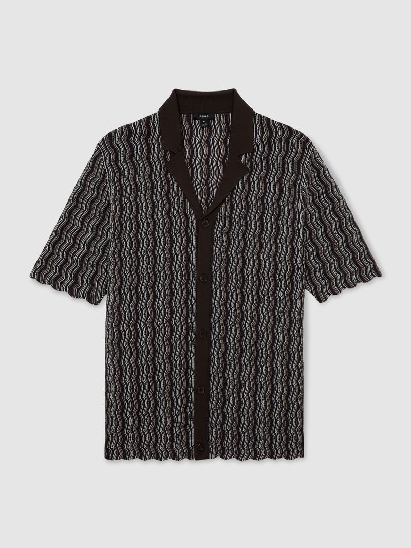 Wavy-Stripe Cuban-Collar Knit Shirt In Brown