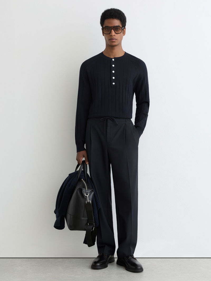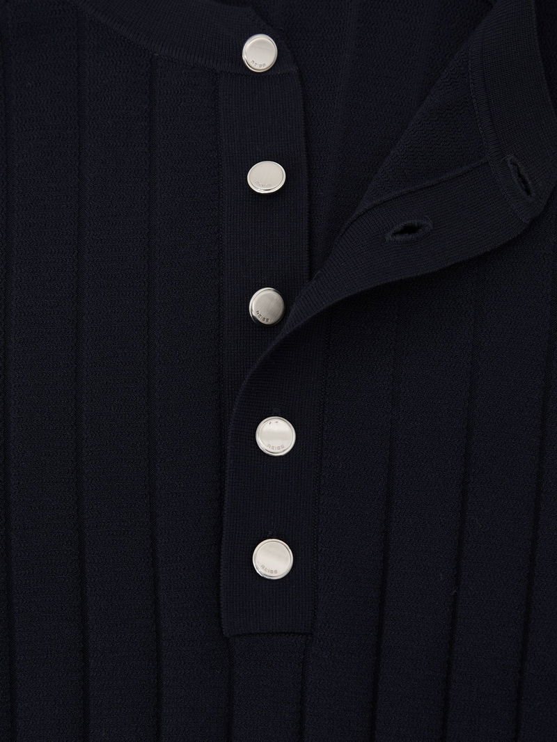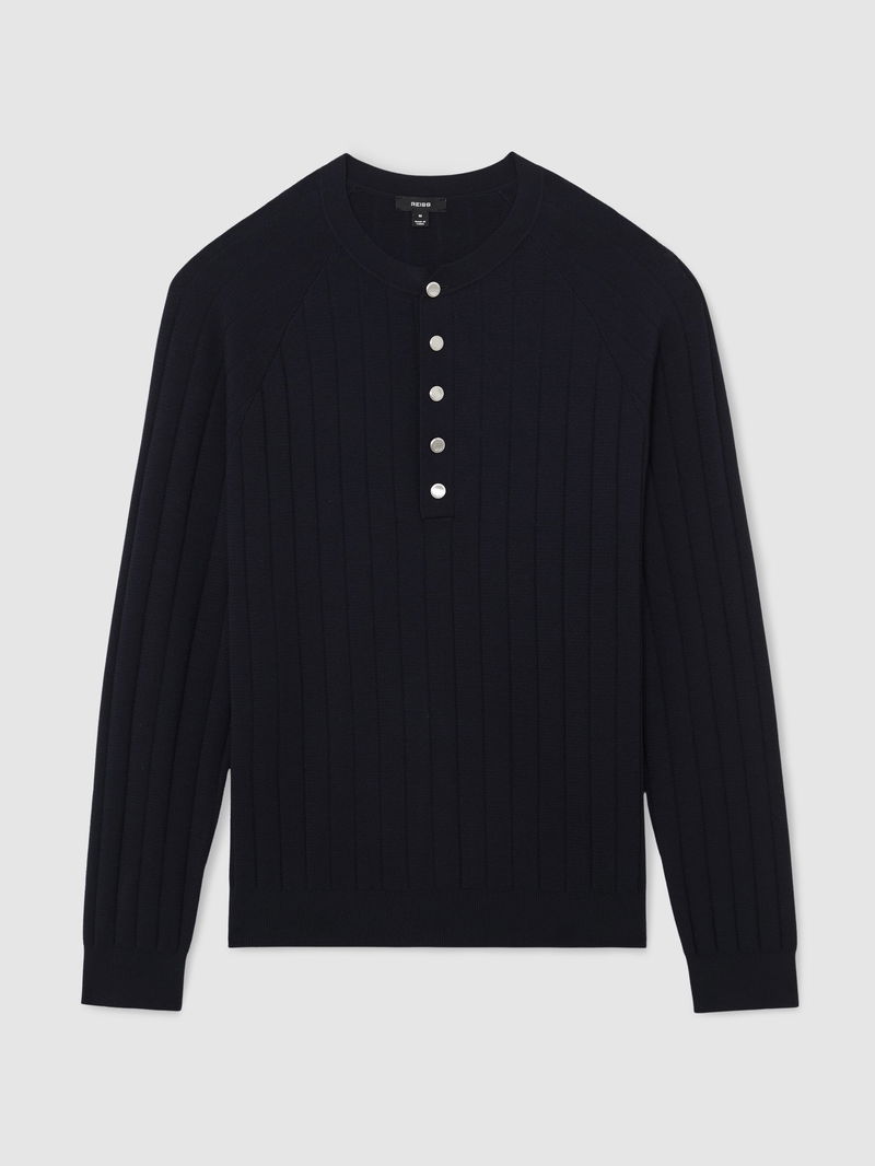 Wide-Rib Knit Henley Jumper In Navy