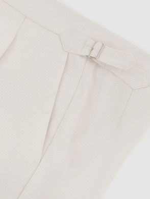 Tailored from a premium wool blend in a twill weave, the Strap trousers are the perfect choice for refined summer events. They’re cut for a regular fit and taper slightly towards the ankle for a modern silhouette.