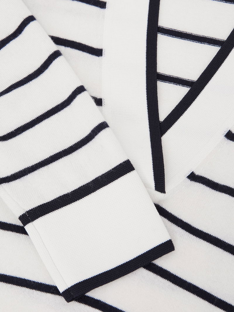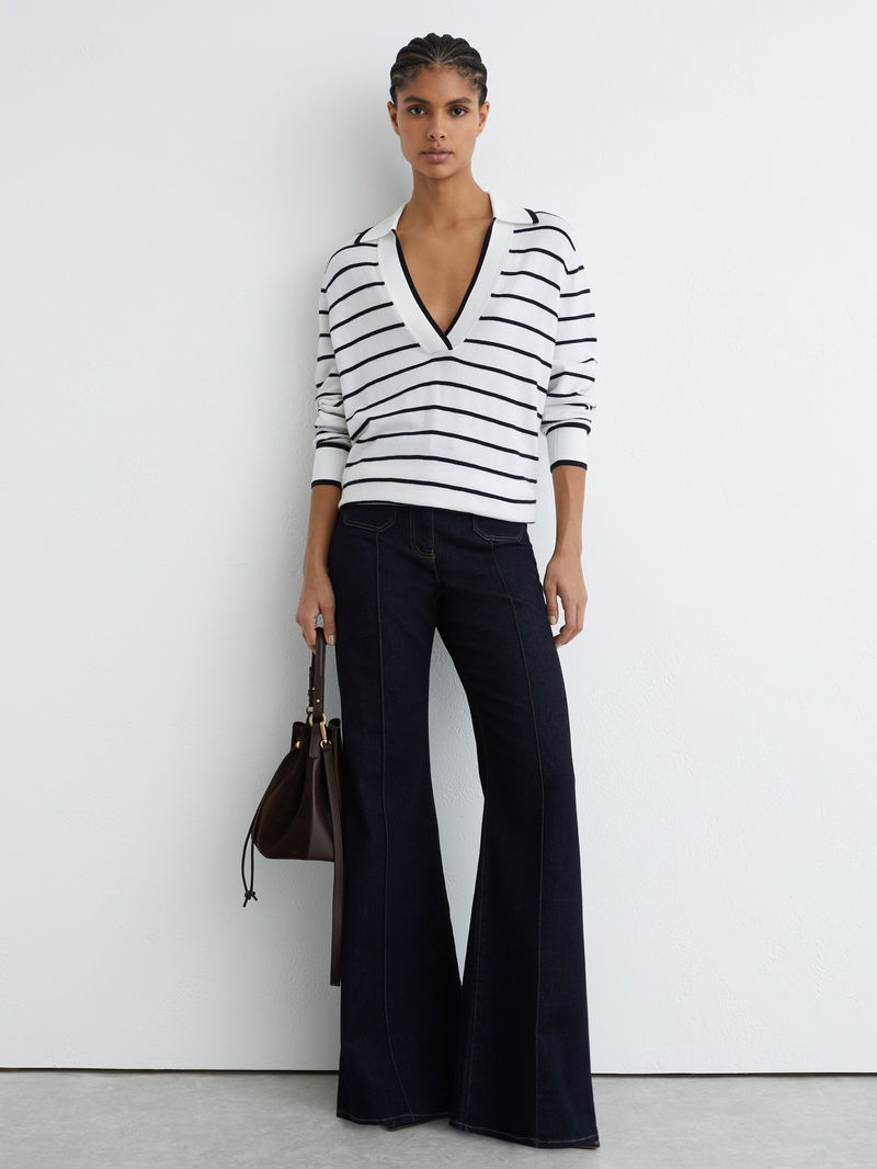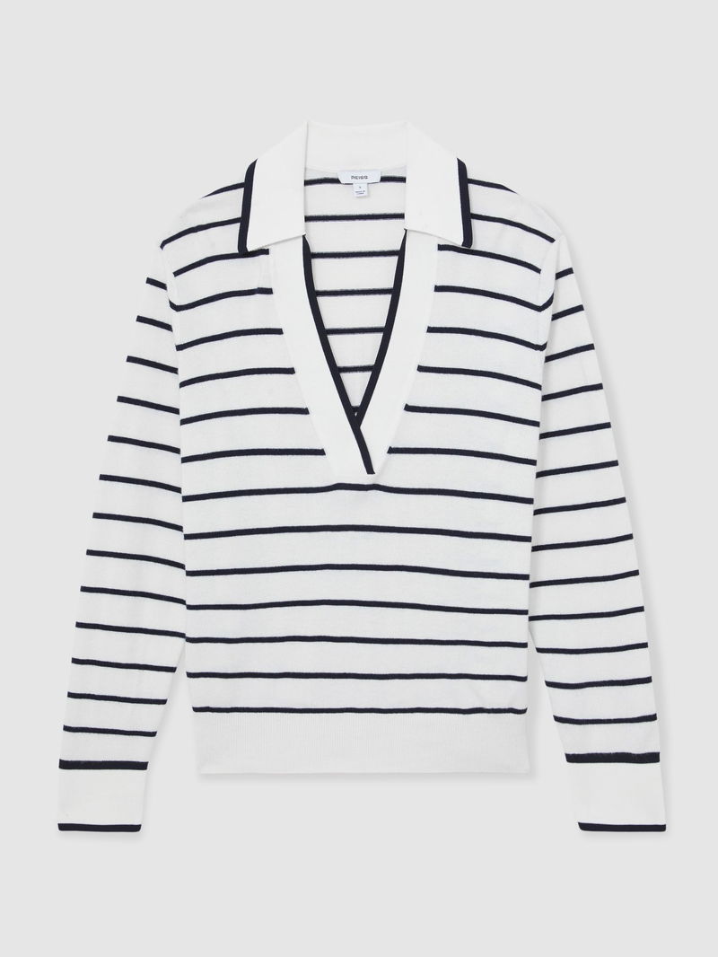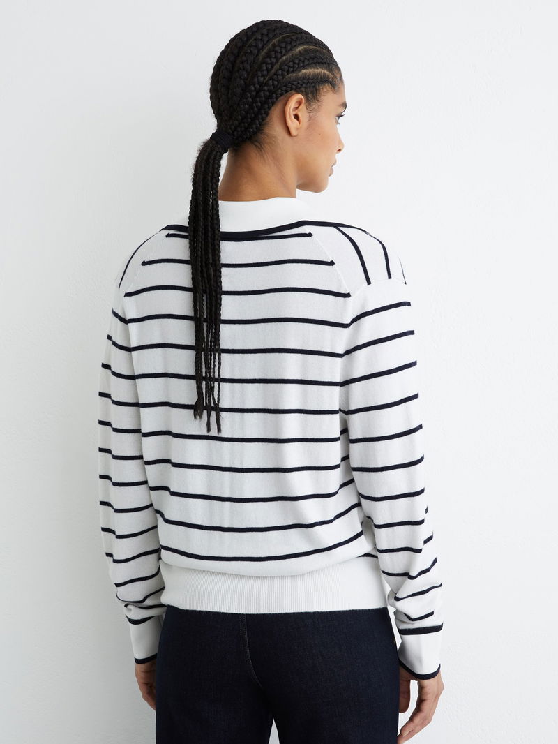 Wool-Blend Collar Stripe Jumper With Cashmere In Ivory/Navy