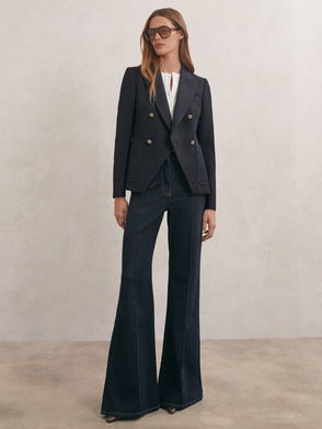 The Louis coat has a soft wool-blend construction. It’s designed in a double-breasted shape with a concealed front closure, offering a clean outlook to your more refined edits.