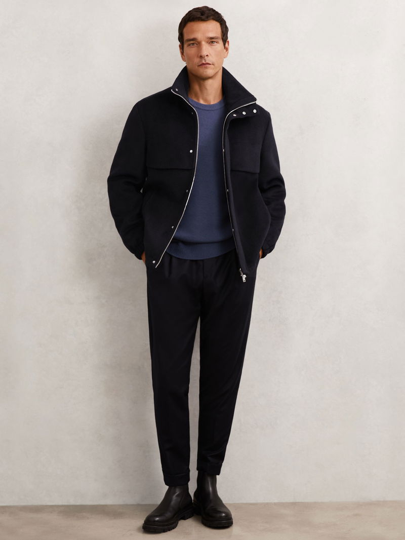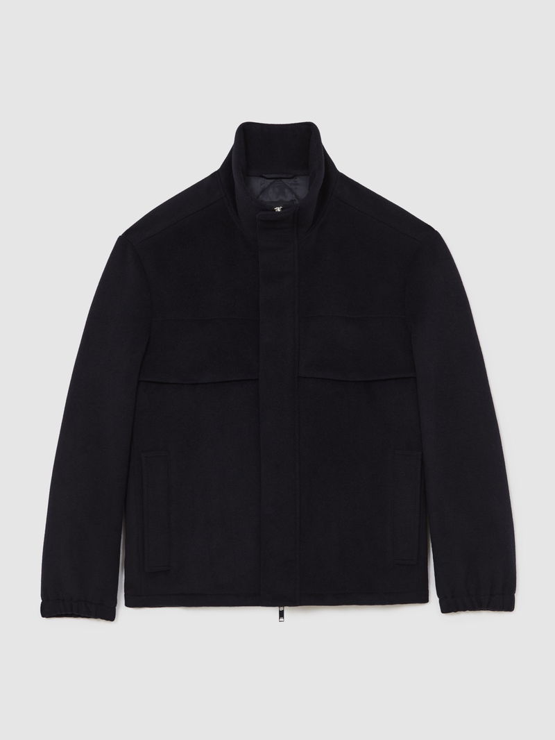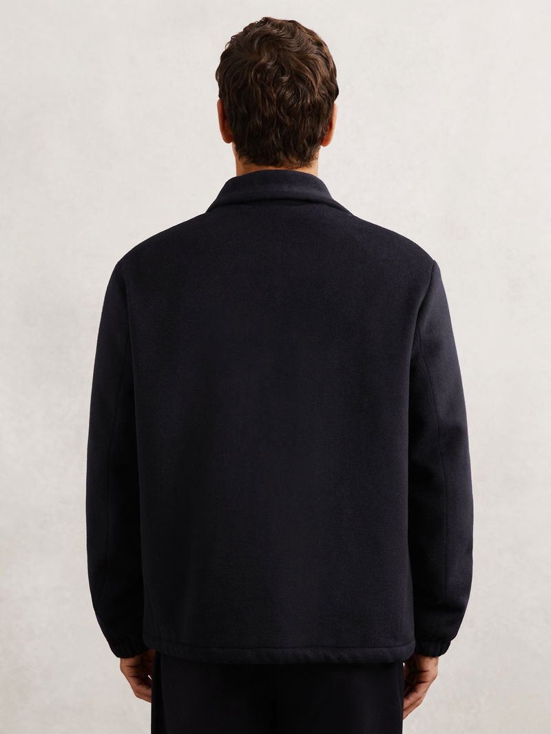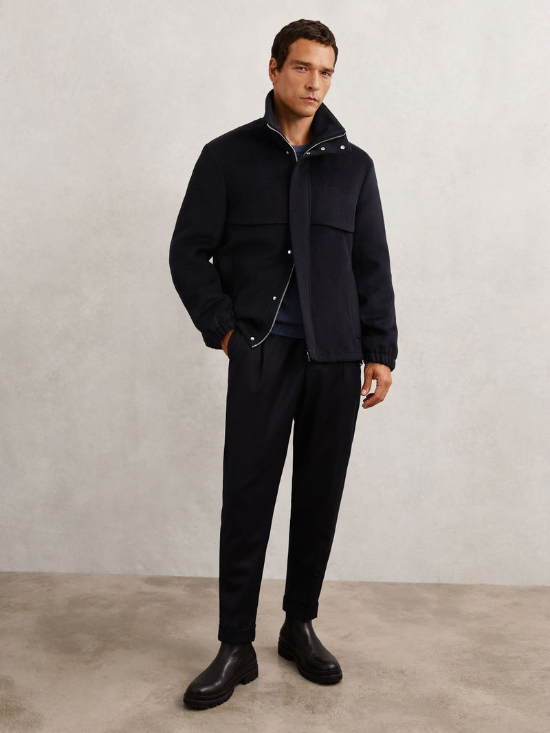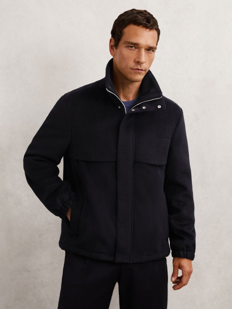 Wool-Blend Funnel-Neck Zip Jacket In Navy