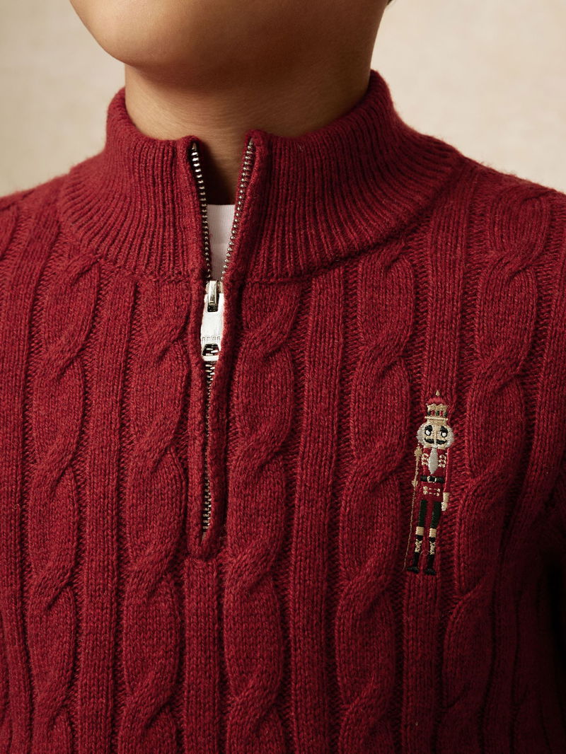 Wool-Blend Half-Zip Nutcracker Jumper In Dark Red