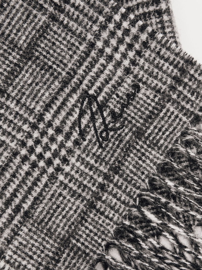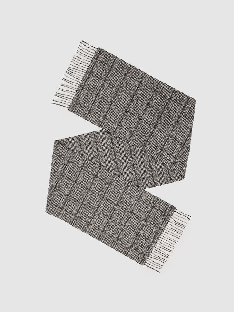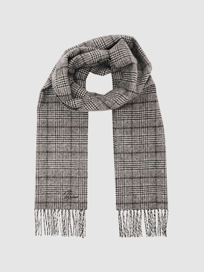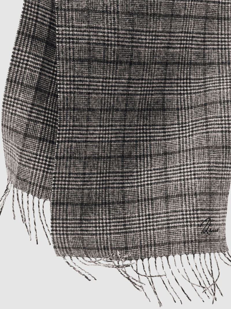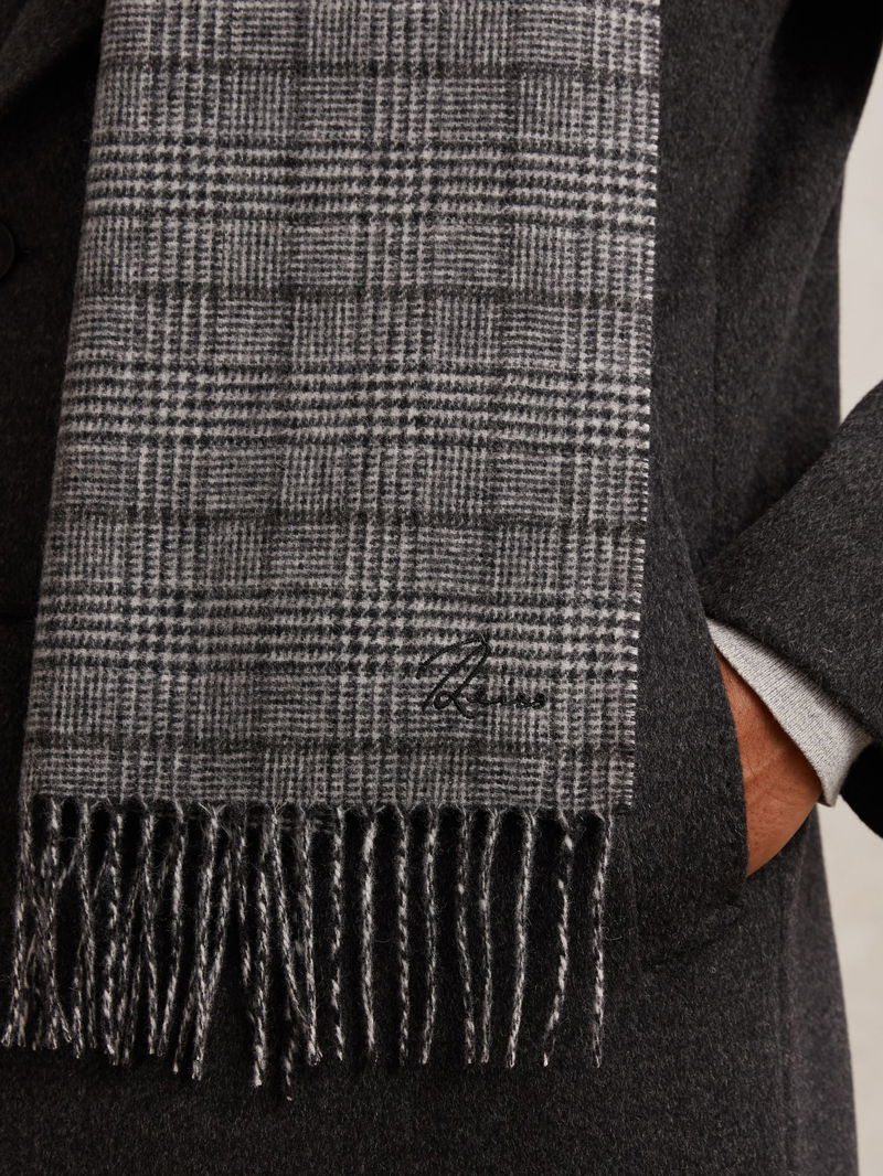 Wool-Cashmere Check Scarf In Charcoal Grey