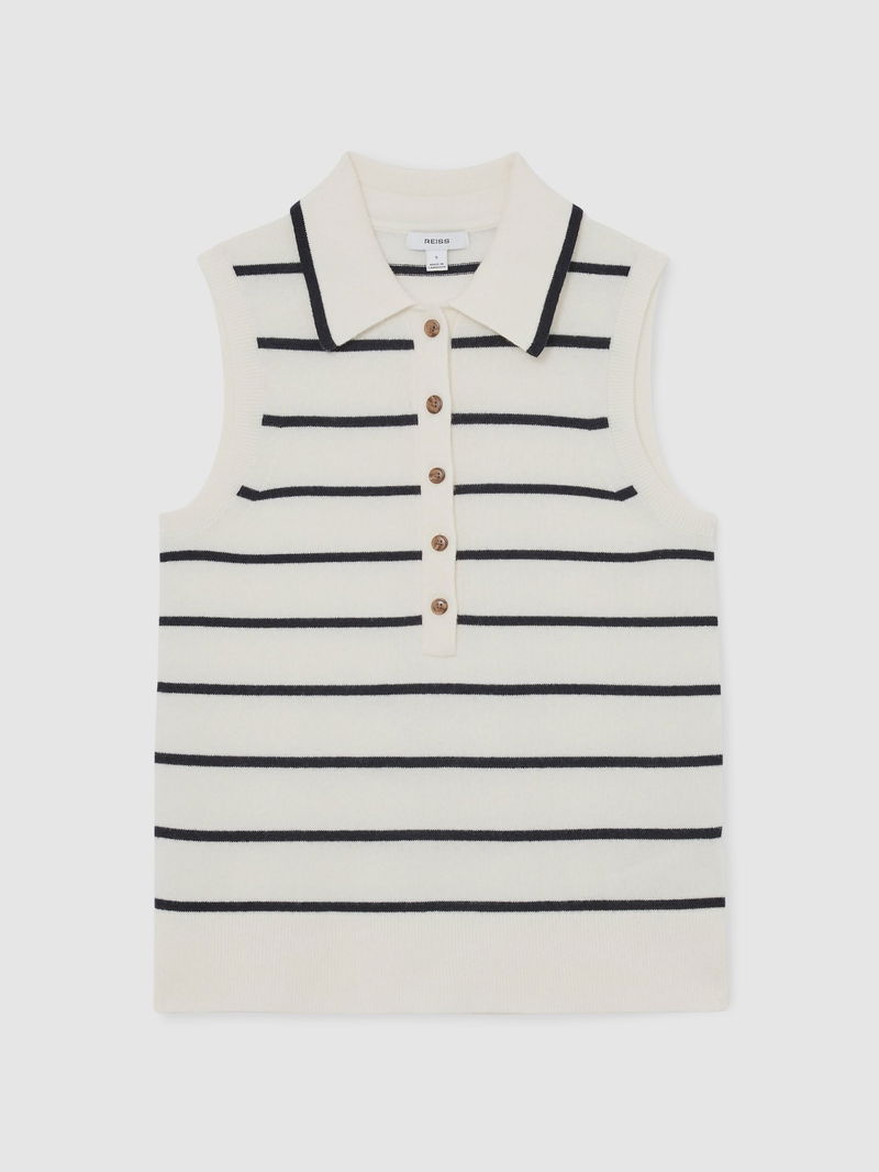 Wool-Cashmere Stripe Polo Vest In Ivory/Navy