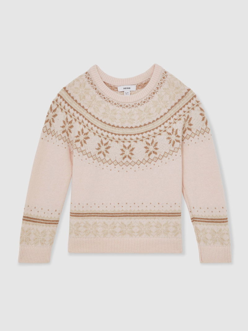 Wool-Cotton Blend Fair Isle Pattern Jumper In Pink