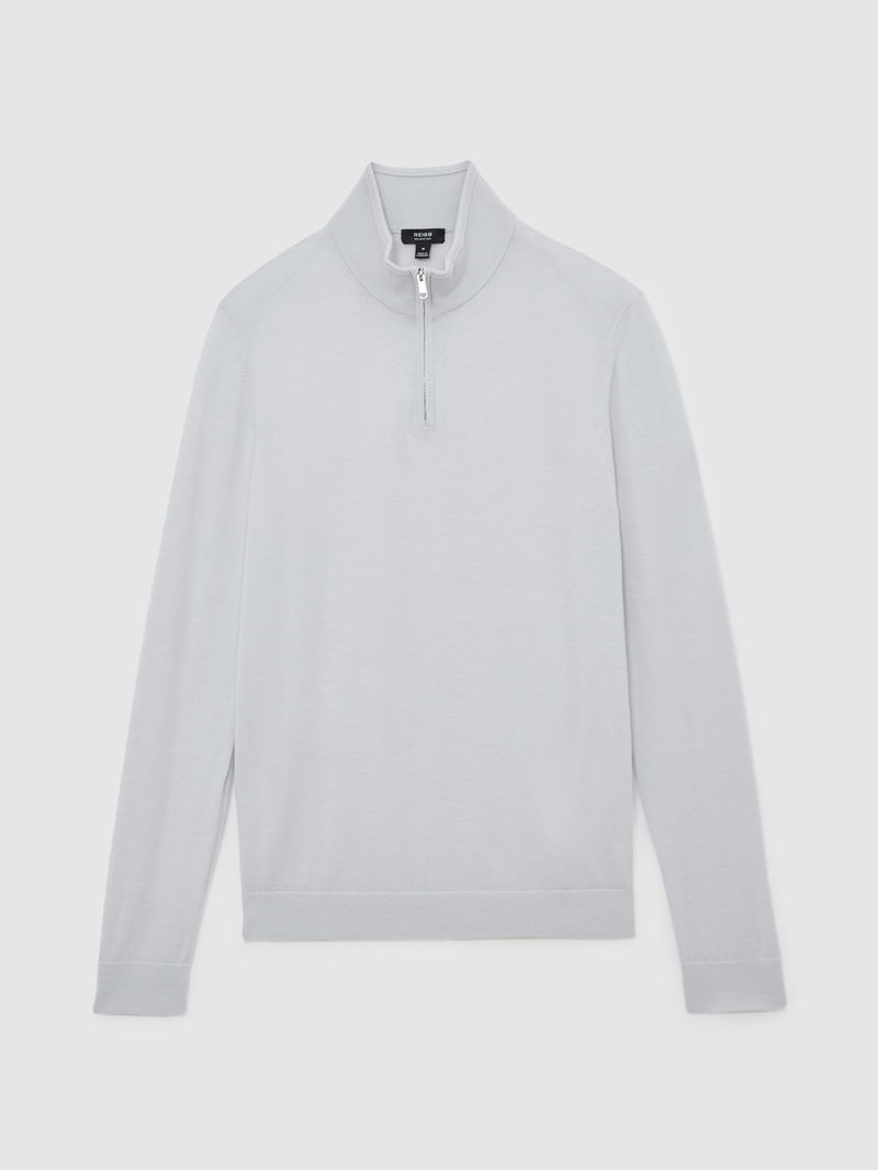 Wool Half-Zip Funnel Neck Jumper In Frost Blue