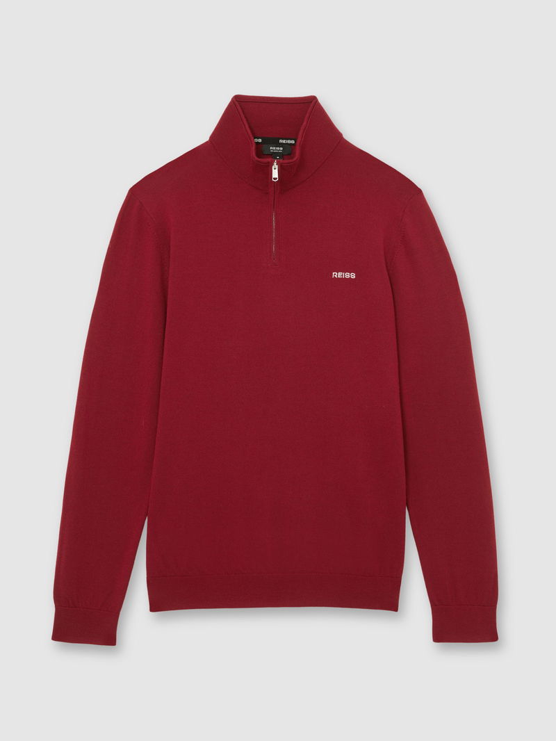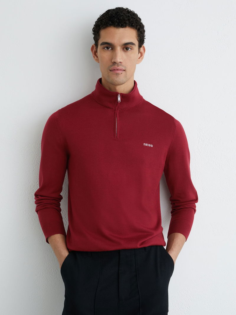 Wool Half-Zip Logo Jumper In Red