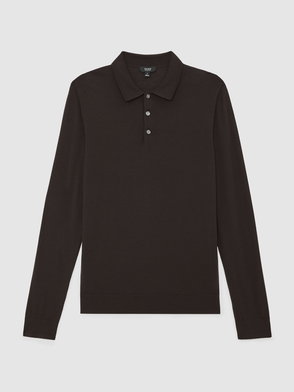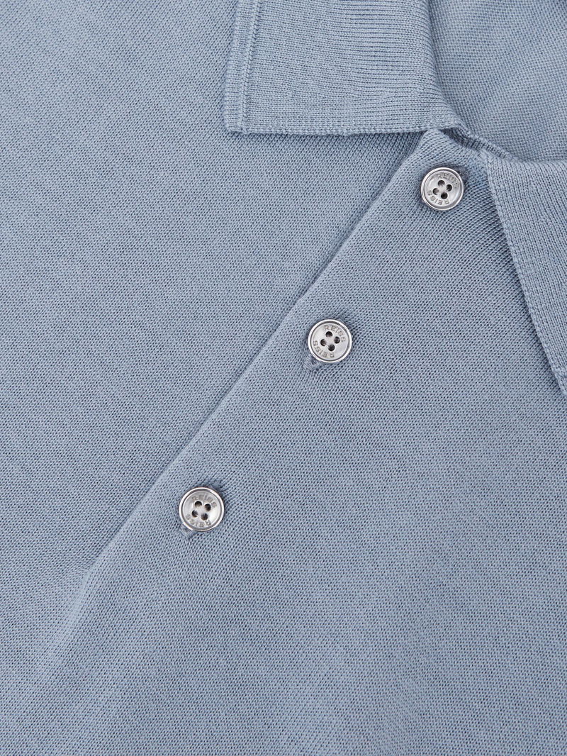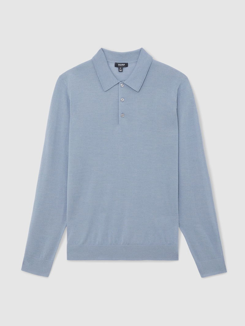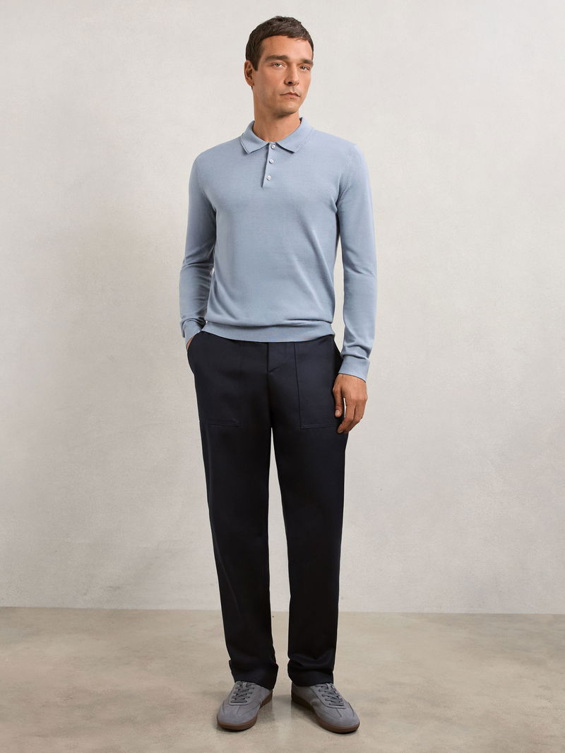 Wool Long-Sleeve Polo Shirt In Steel Blue