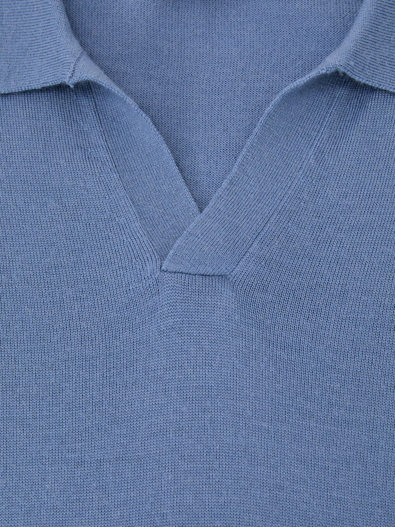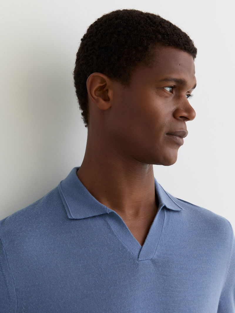 Wool Open-Collar Polo Shirt In Nordic Blue