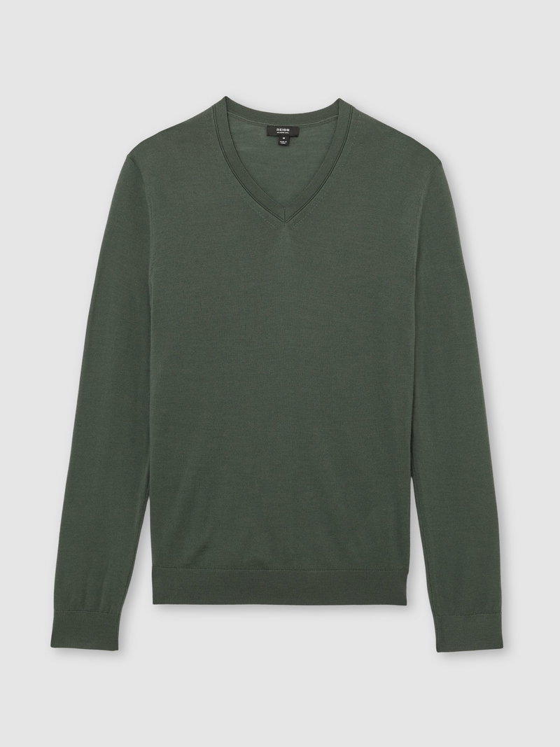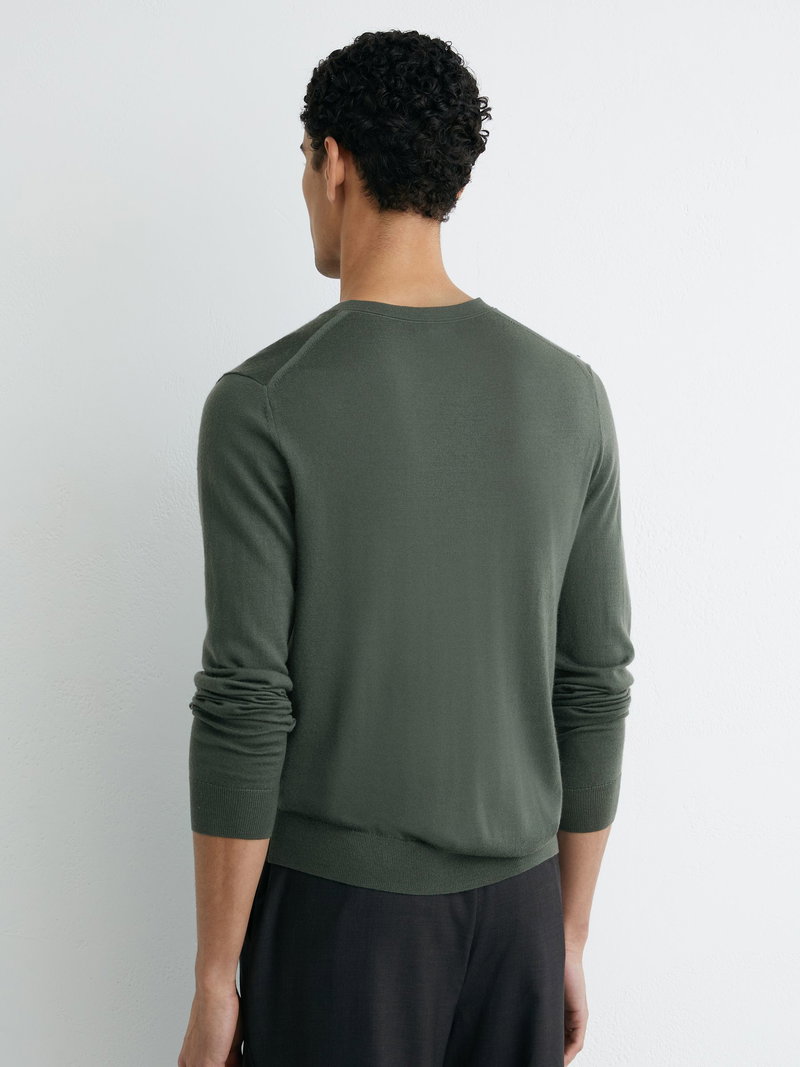 Wool V-Neck Jumper In Kale Green