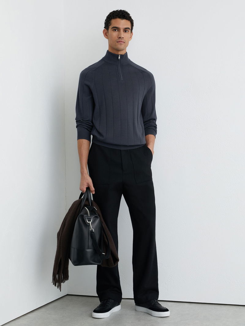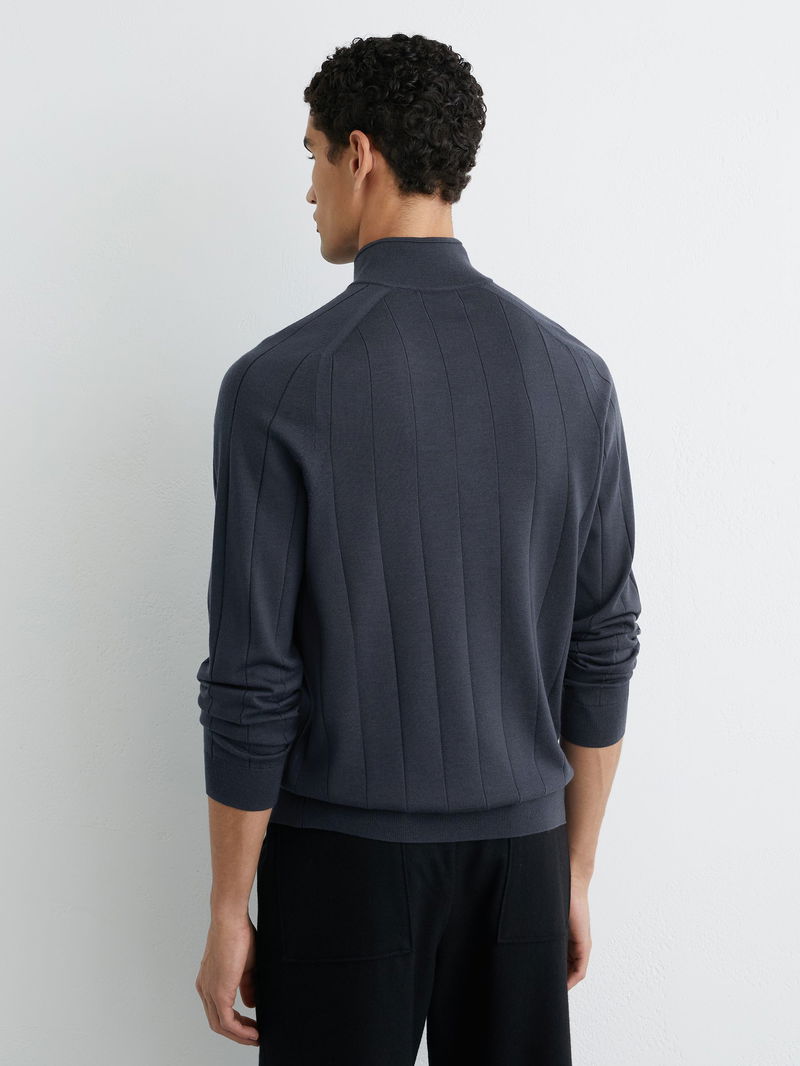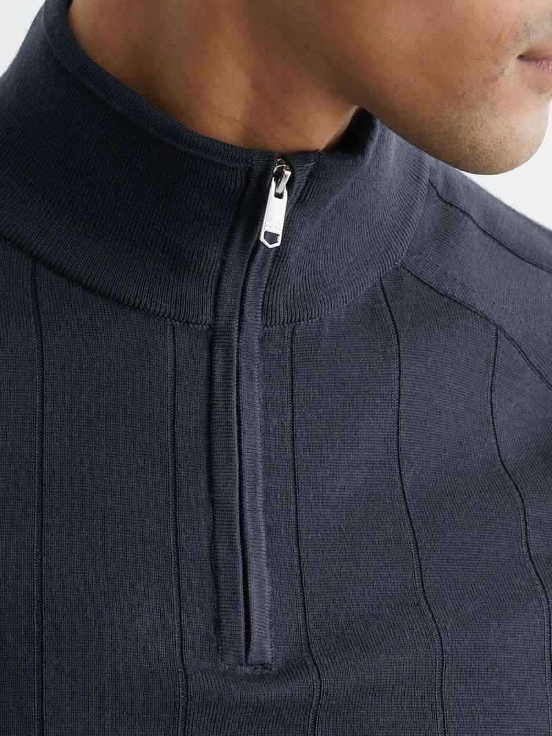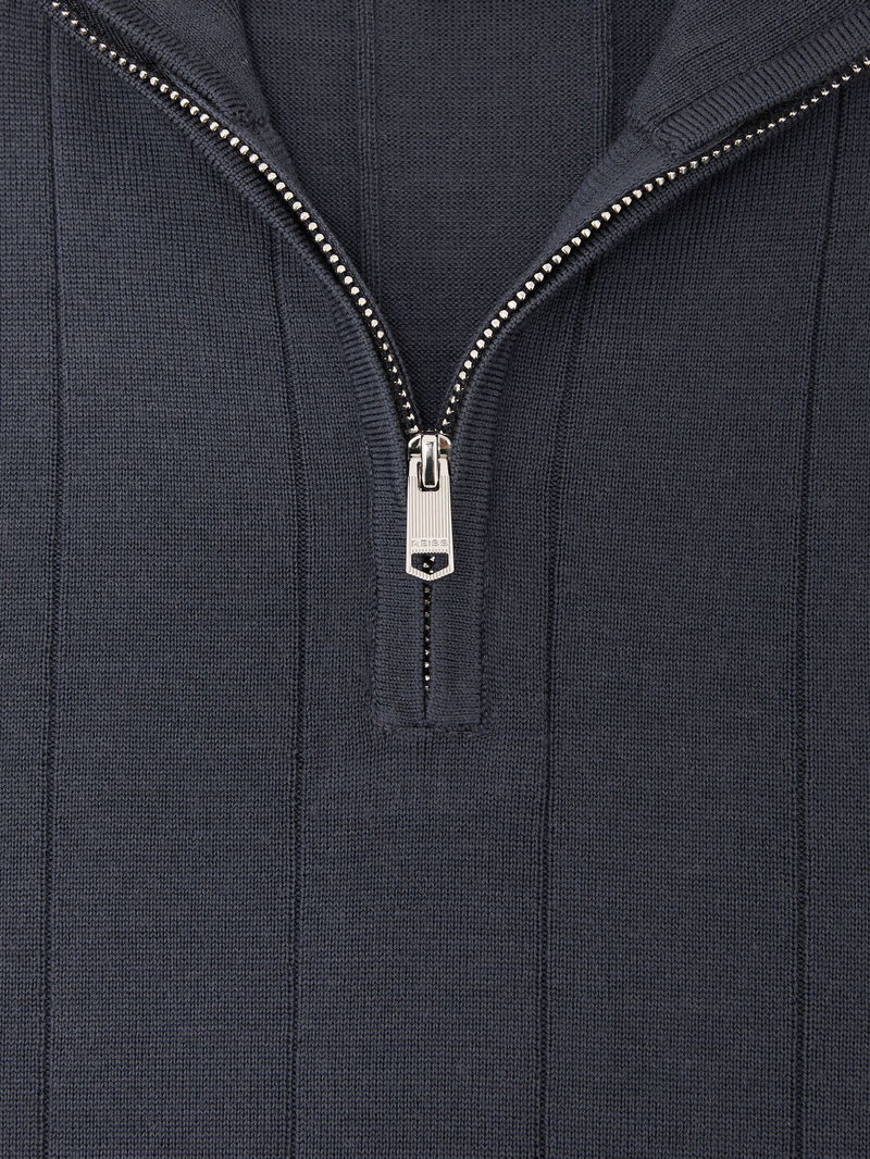 Wool Wide-Rib Half-Zip Jumper In Airforce Blue