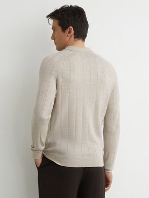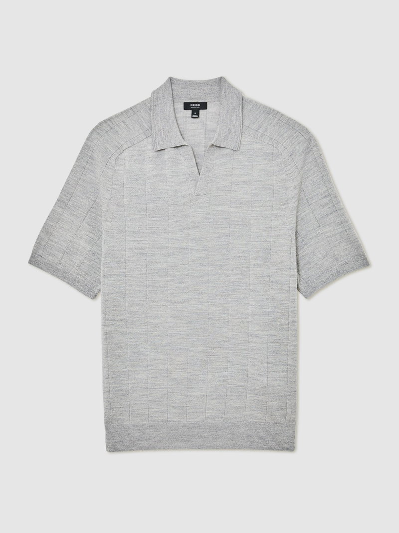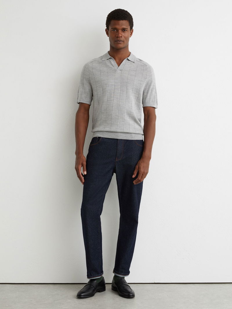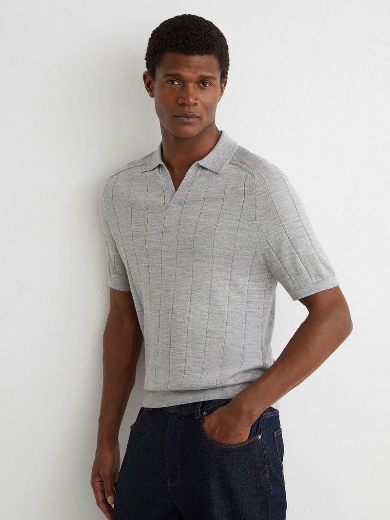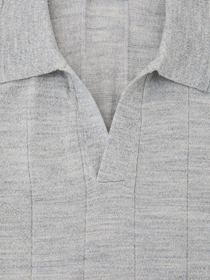 Wool Wide-Rib Polo Jumper In Soft Grey Mouline