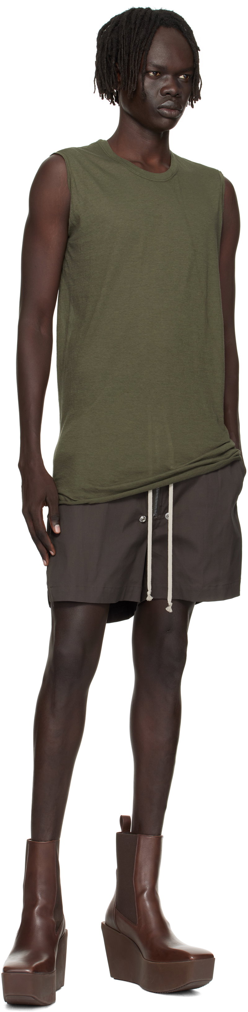 Rick Owens' unique aesthetic blends grunge, glam rock and minimalism in unconventional collections that bring drama and avant garde energy to everyday pieces, from shoes and boots to leather jackets and dresses.