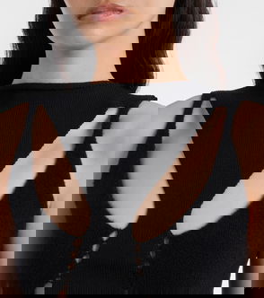 Rick Owens' sweater looks simple from the front, but turns to reveal an unexpected teardrop-shaped cutout at the back. It's knitted from ribbed wool that's fine and lightweight, so it's perfect for layering in-between seasons. Tuck yours into everything from jeans to leather pants.