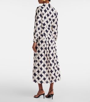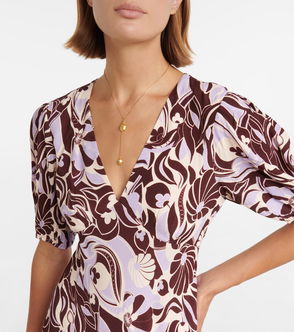 RIXO's 'Linnett' dress flutters with rows upon rows of flouncy ruffles. Made from wispy silk-chiffon, it's printed with a beautiful 'Waterblossom' pattern developed in-house and has romantic blouson sleeves.
