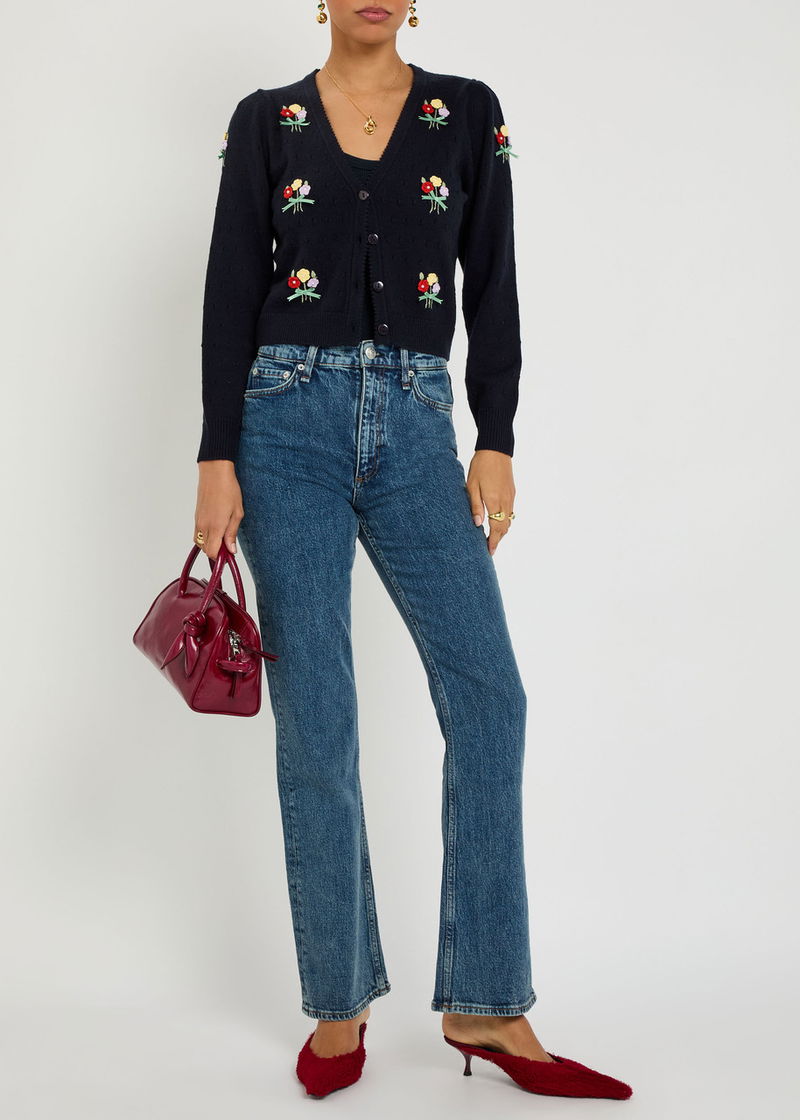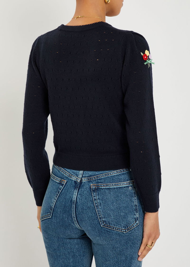 Merinda Floral-appliquéd Wool Cardigan