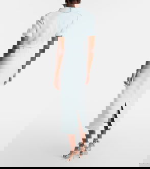 This midi dress is crafted from crêpe with a draped, twist detail at the neckline and removable shoulder pads.