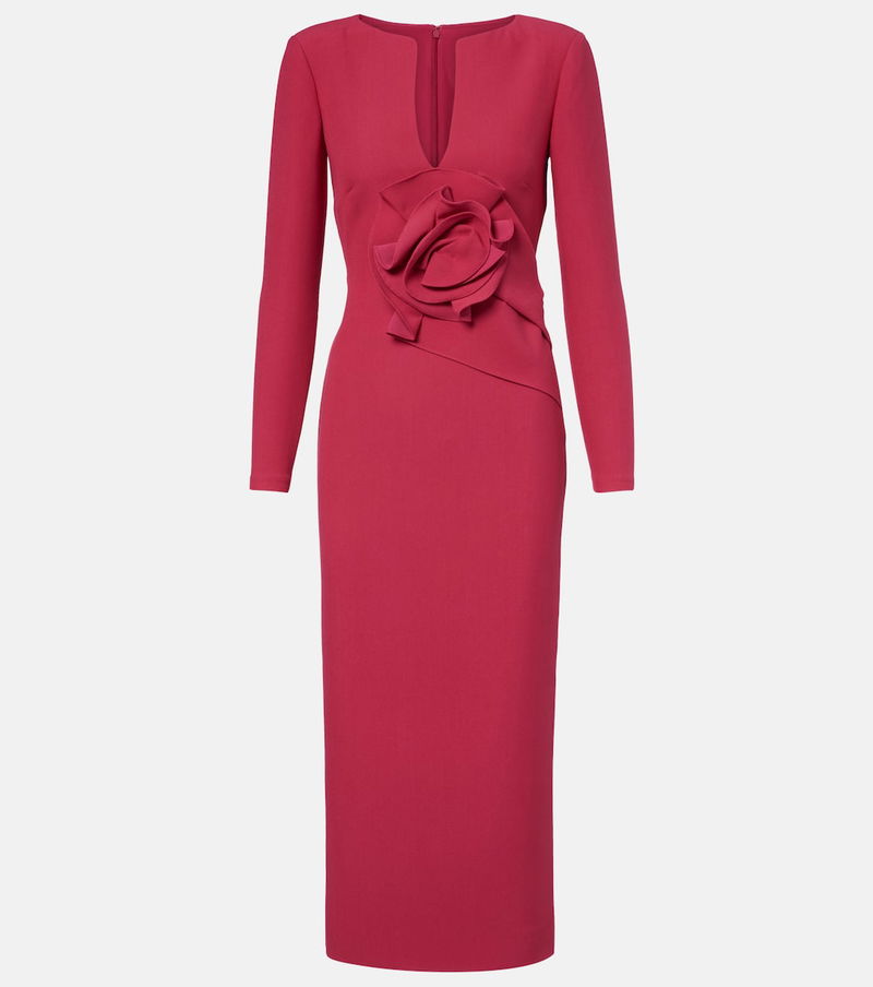 Floral-appliqué Crêpe Midi Dress