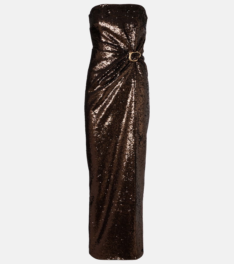 Gathered Sequined Strapless Gown