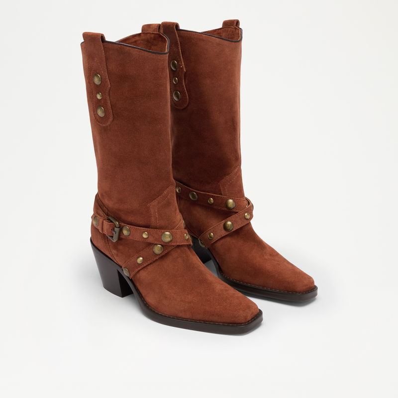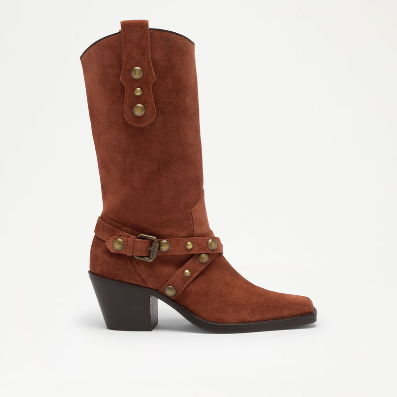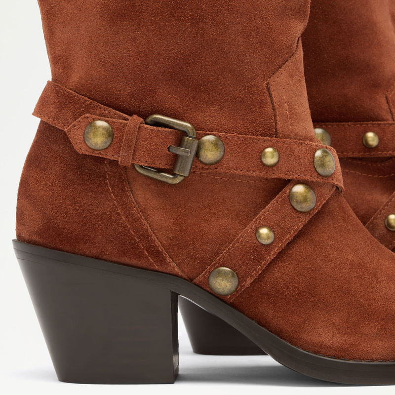The Radmore knee high boots are all about hardware. Crafted from soft suede, with a sculptured toe and Cuban heel, this Western-inspired silhouette is complete with gold studs and buckle detailing.