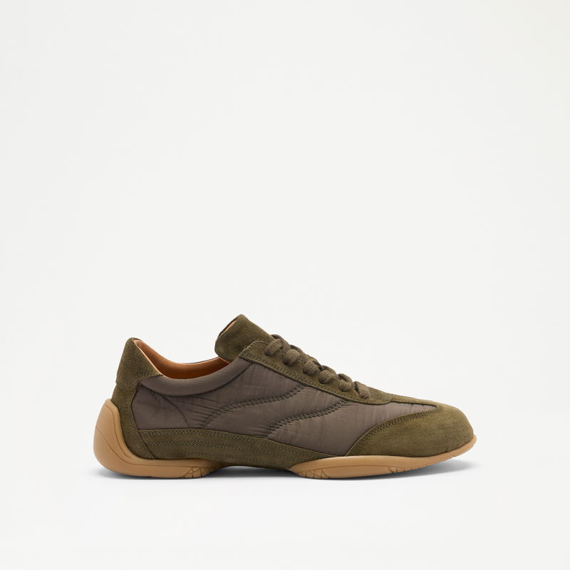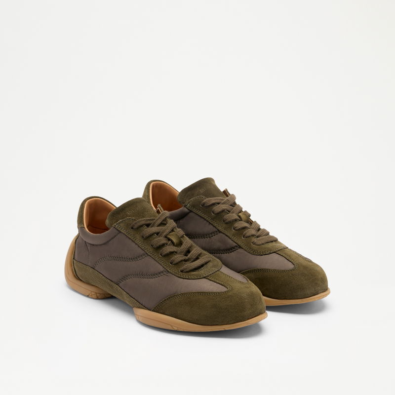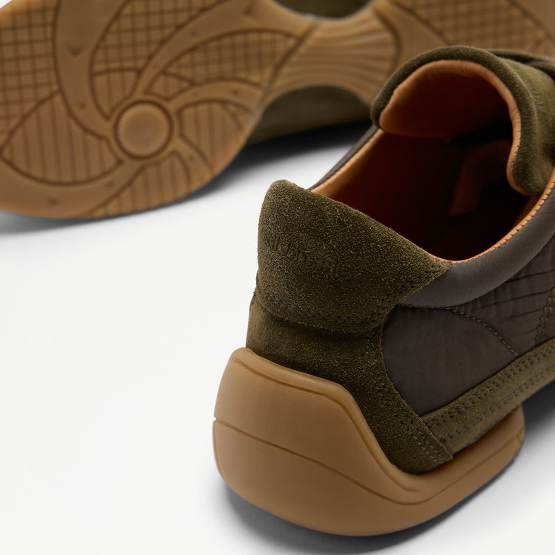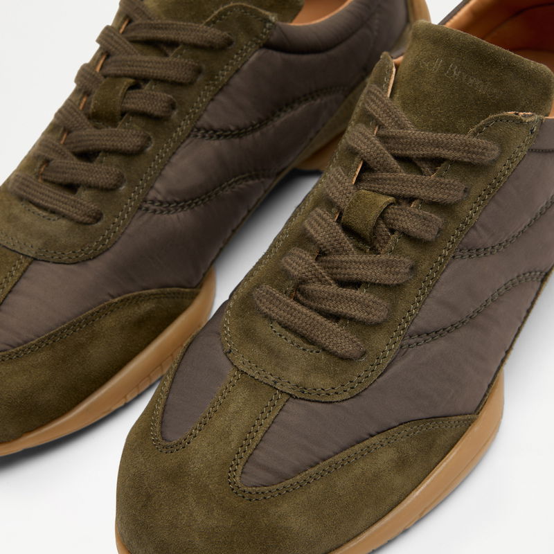 Ruthwaite is the brand’s newest streamlined trainer style. Crafted in Portugal in soft suede it's elevated by satin panels, and a full drench tonal design. The standout feature – a chunky split gum sole that wraps around the heel and front of the trainer.
