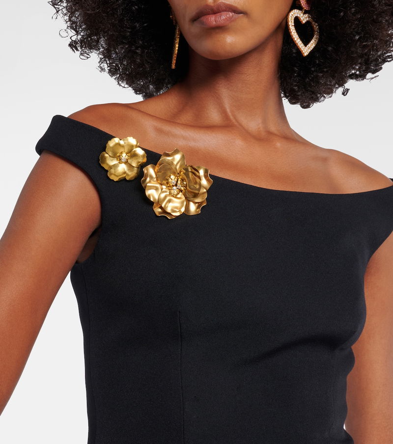 This piece is made from Safiyaa's signature heavy crêpe – a fabric that is favored for its graceful draping qualities. This maxi dress features a detachable belt at the waist and an embellished neckline.