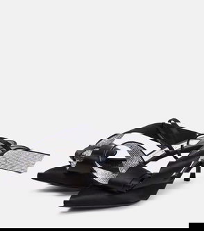 Pumps, Satin, Crystals, Pointed toe, Slip on, Lined in leather, Leather sole.