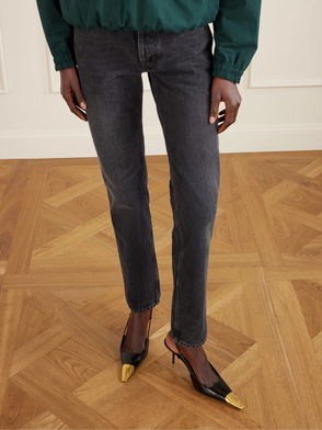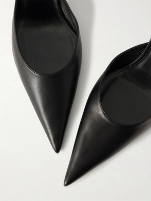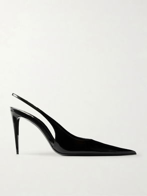 The elongated, squared-off toes on SAINT LAURENT's 'Anne Marie' pumps create the illusion of longer legs. Set on angled 75mm heels, they're made from black glossed-leather and have gathered slingback straps.