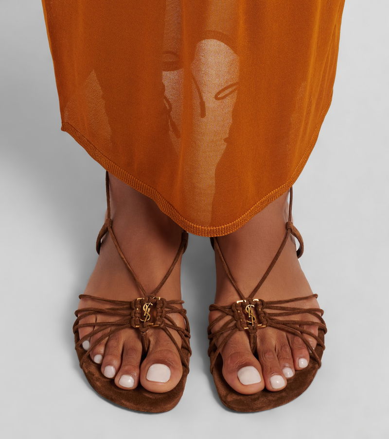 Since its conception in 1961, Saint Laurent has been coveted for its elegant Parisian aesthetic. Expertly Italian-made from smooth suede, the Babylone sandals feature a networking of straps topped with iconic monogram hardware.