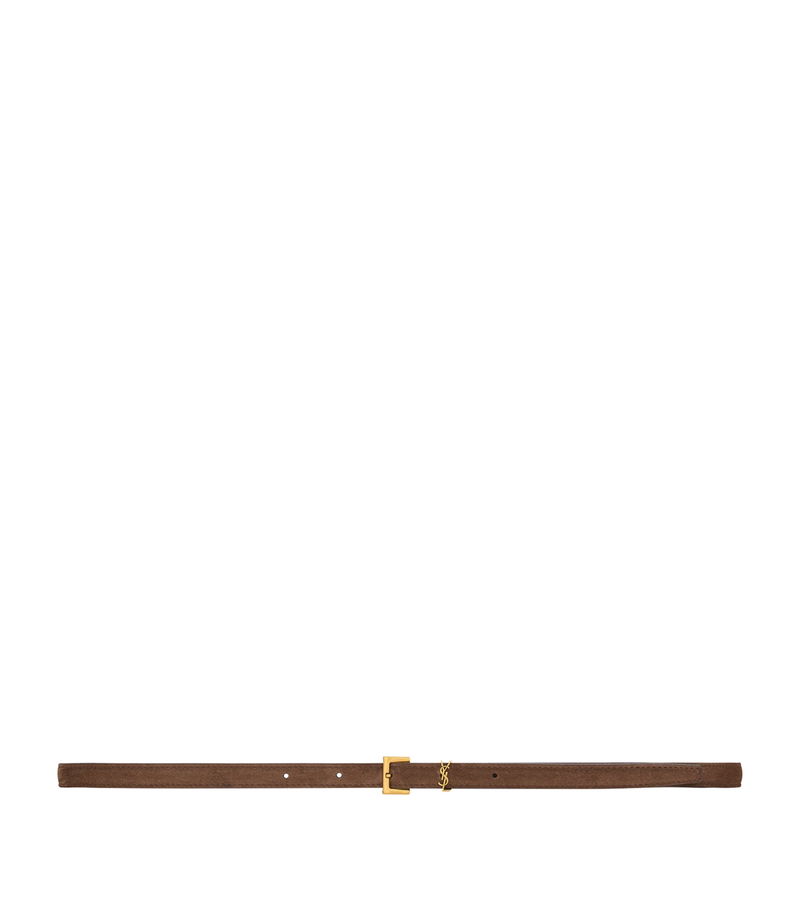 Saint Laurent’s Cassandre monogram is a testament to the Maison's long lineage of beloved designs, and it’s an unmistakable detail that graces this slim belt. Crafted from smooth calfskin, this slender accessory is supple to the touch, providing a sleek setting for the brand’s gold-tone buckle.