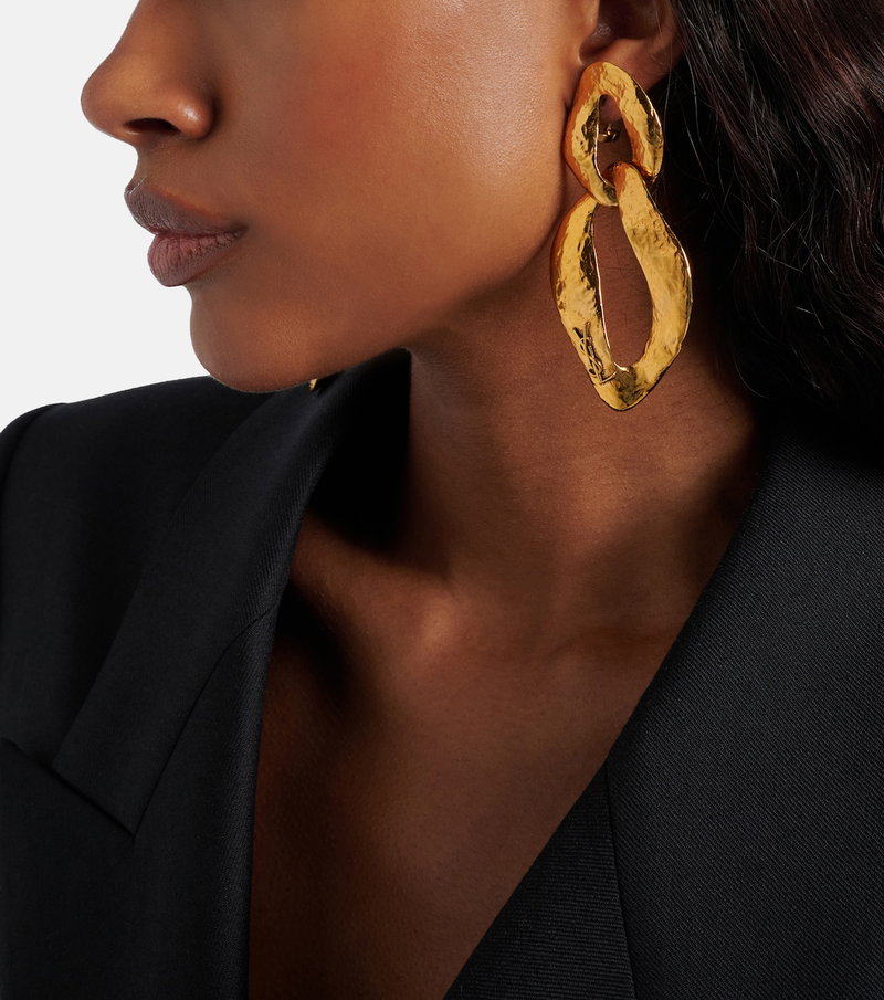These earrings from Saint Laurent are defined by a hammered construction and linked gold-toned accents. The pair is decorated with signature Cassandre details and secured by clip-on fastening.