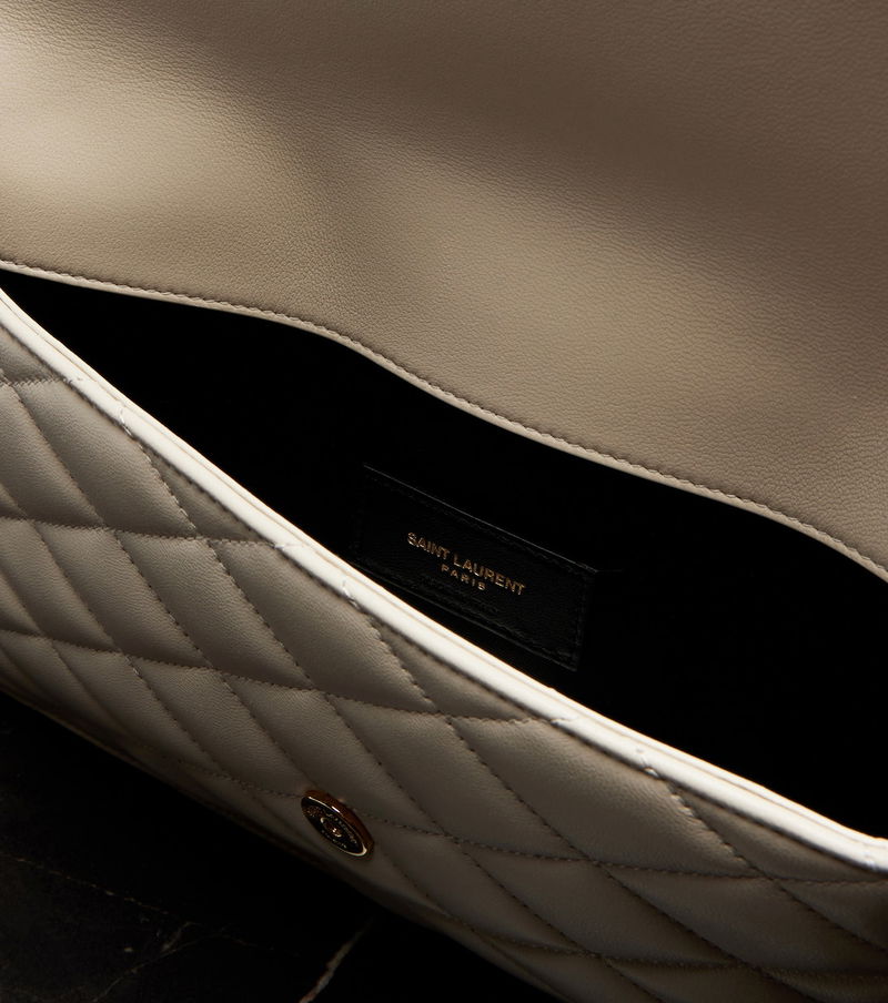 This Saint Laurent pouch is Italian-made from quilted leather and detailed with signature Cassandre hardware on the flap closure.