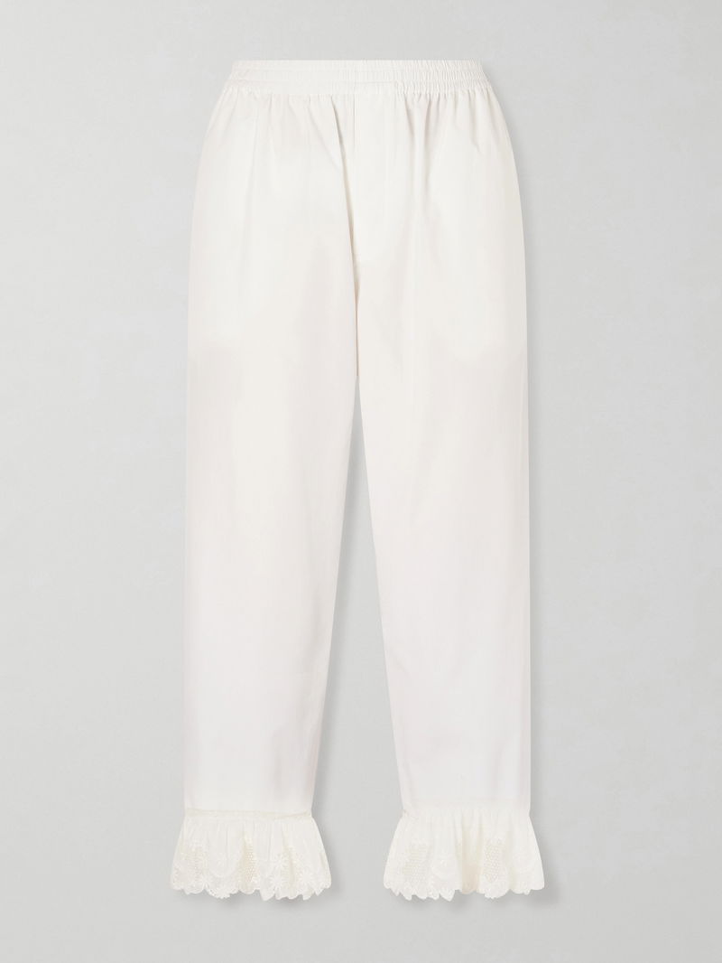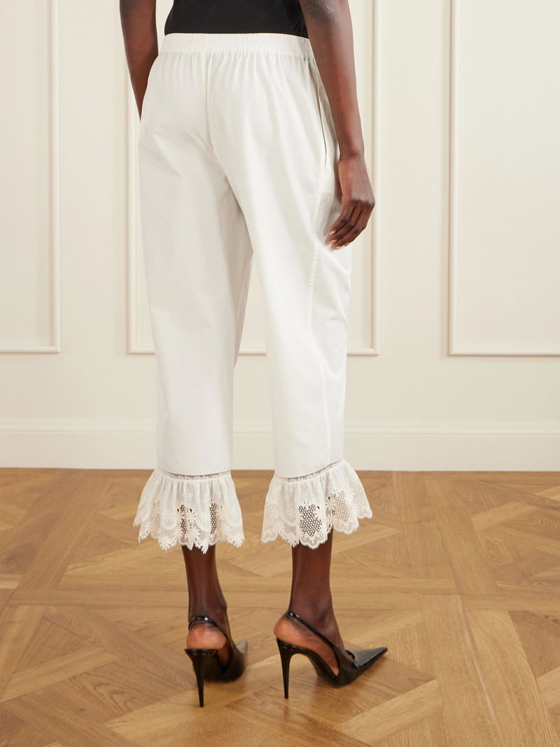A subtle lace ruffle at the hems gives these SAINT LAURENT pants an unexpected romantic finish. They're made from lightweight cotton-poplin with a low-rise and cropped, straight legs. Keep the look sharp with a tucked-in blouse and sleek heels.