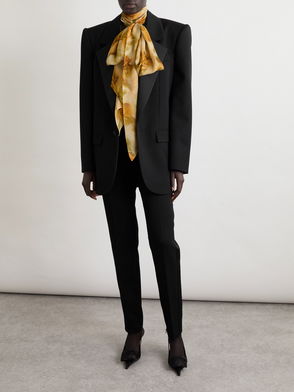 The styling options with a blazer like Saint Laurent's are endless. Made in France from black grain de poudre wool, it's designed for a slightly loose fit and has exaggerated satin peak lapels. Style yours with tailored pants and heels for special evenings.