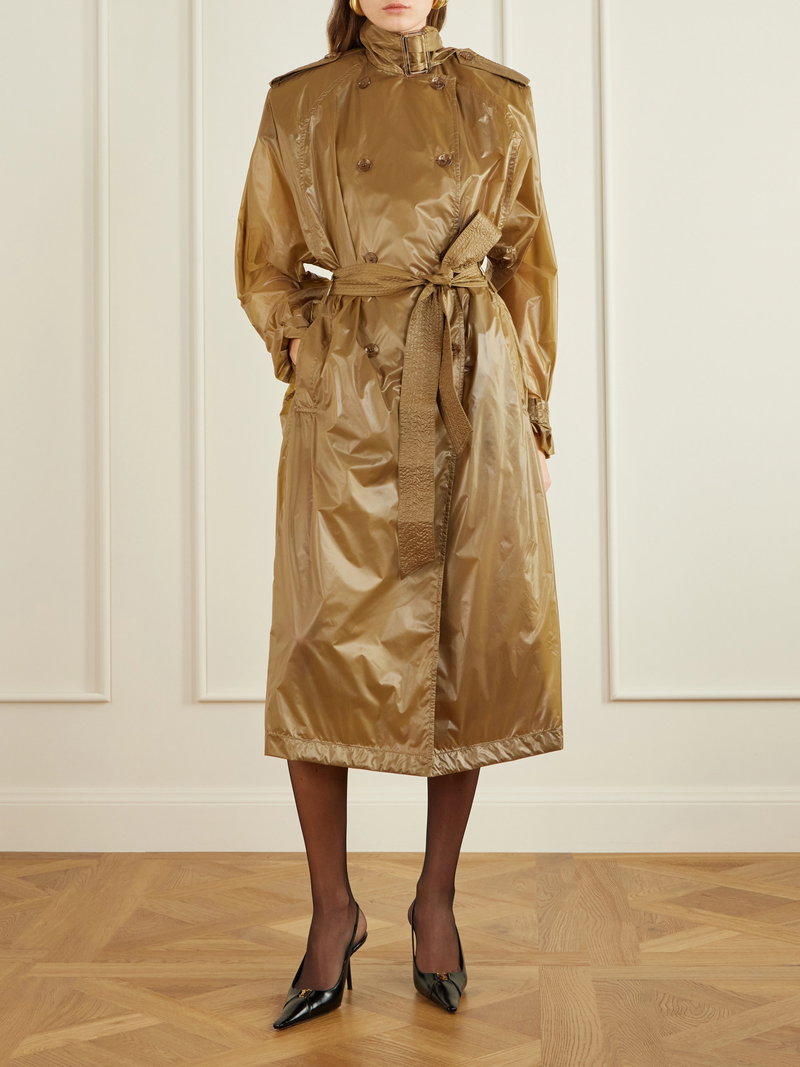 Double-breasted Belted Shell Trench Coat