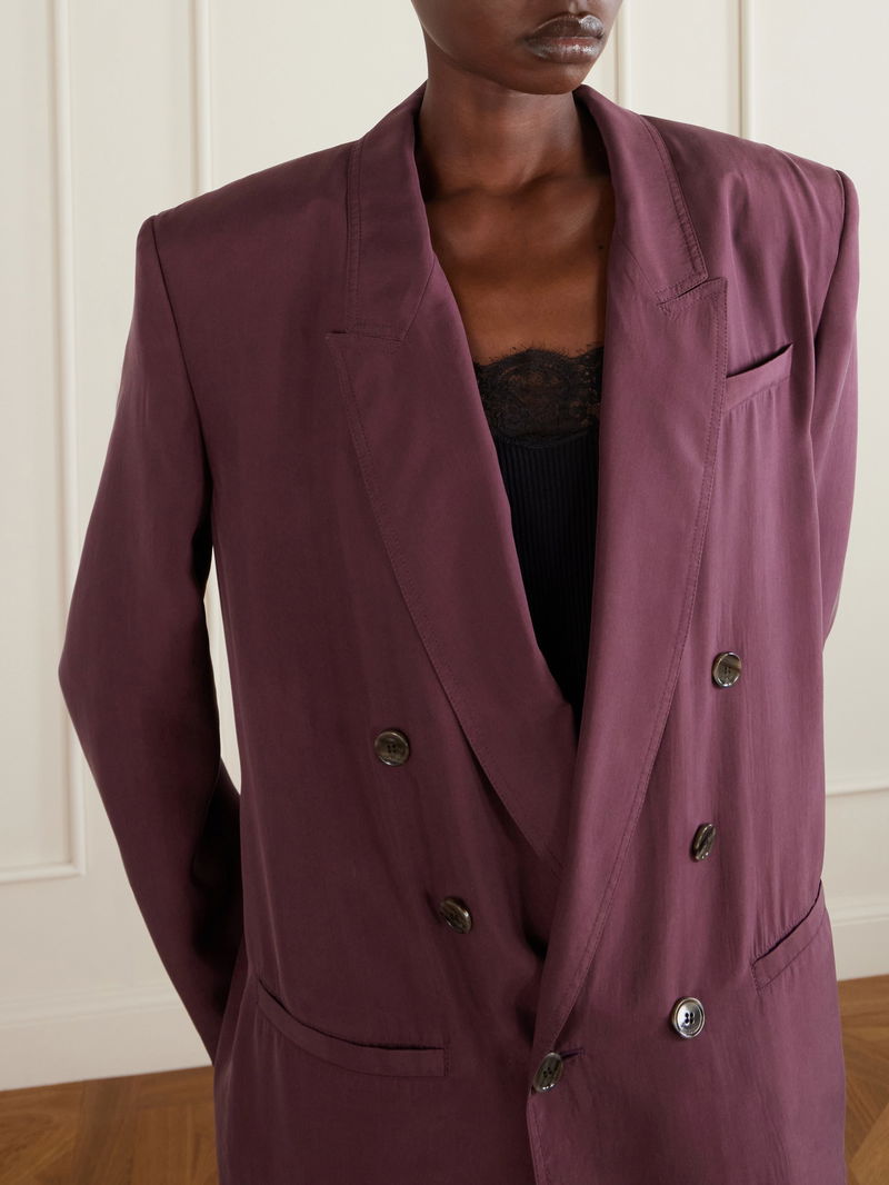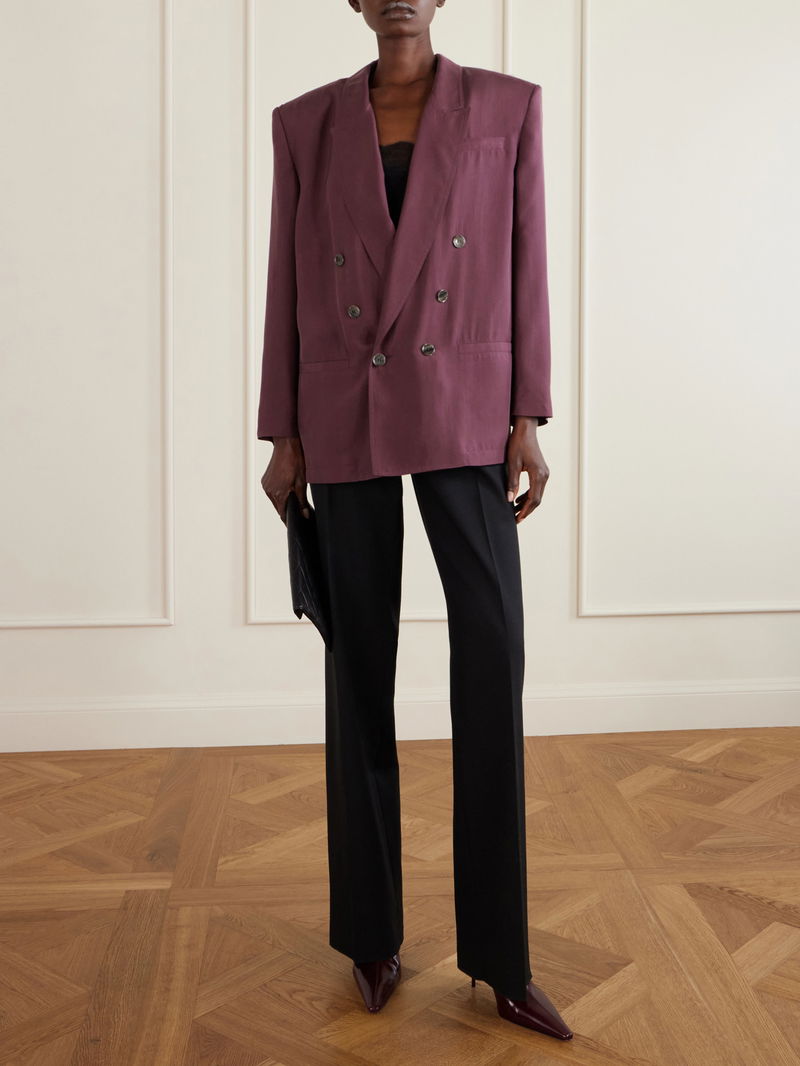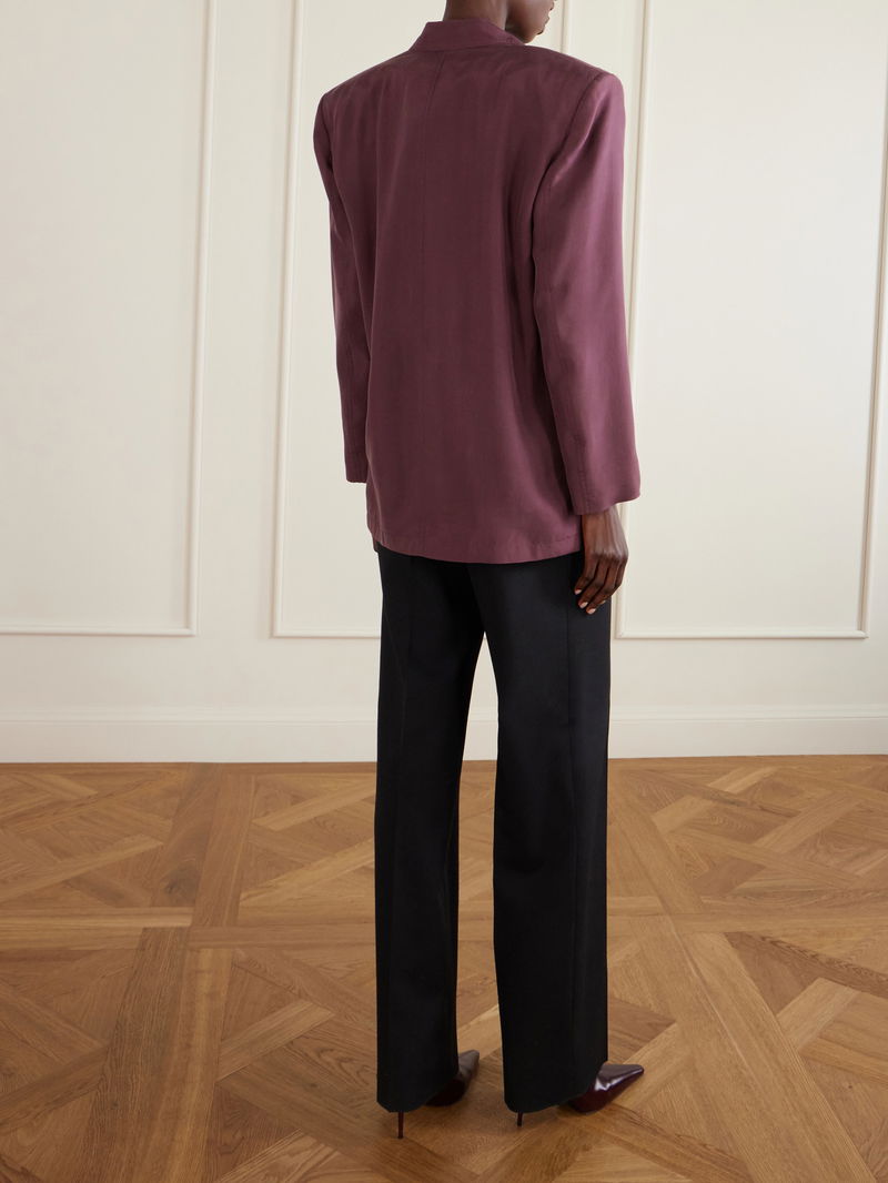 Drawing inspiration from menswear, this SAINT LAURENT blazer showcases the brand's expertise in tailoring. Crafted from fluid silk-habotai, it features a sophisticated six-button, double-breasted close and peak lapels. Wear yours with jeans or shrugged over a slip dress.
