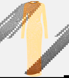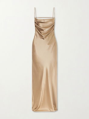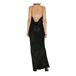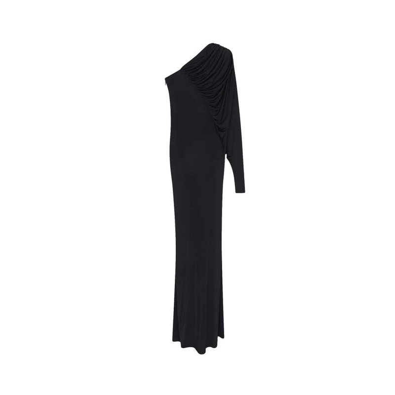 Saint Laurent dress with an asymmetric neckline and long draped sleeves, crafted in viscose for evening and occasion wear. The design focuses on fluid draping and a sleek side zip closure for a refined silhouette.
