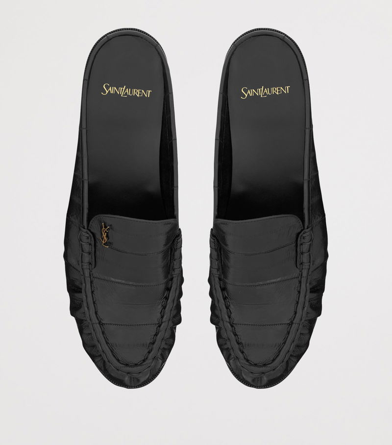 A pared-back iteration of a Saint Laurent classic, these Le Loafer mules join the style’s sleek lines with an easy slip-on silhouette. Crafted from supple eel leather, these feature the sophisticated almond toe of its predecessor, while gold-tone sign-offs grace the heel and upper for a gilded accent.