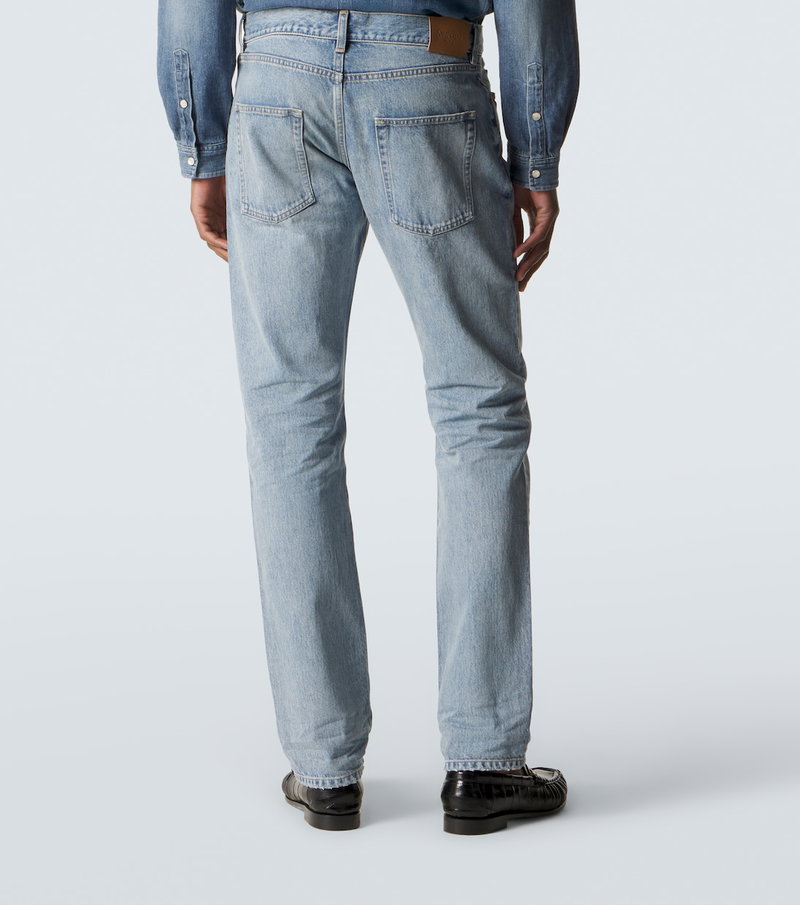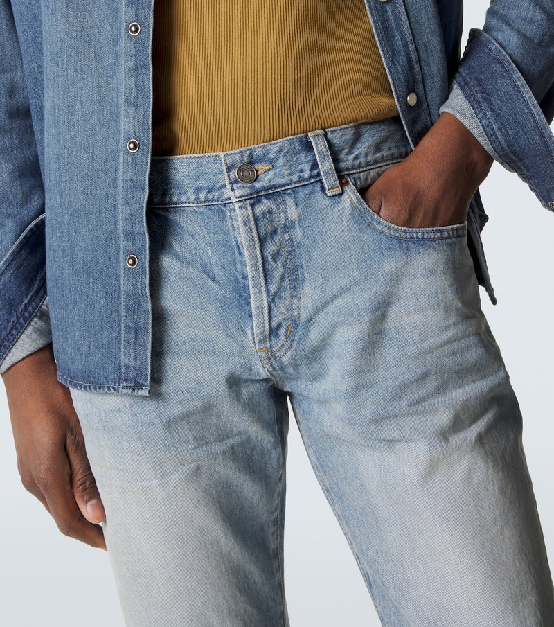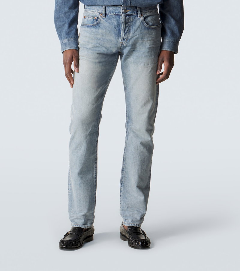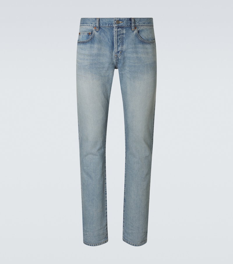 Rely on timeless styles for your everyday ensembles with these slim jeans from Saint Laurent. The pair is complete with a leather logo patch at the back and a washed finish lending a faded look.
