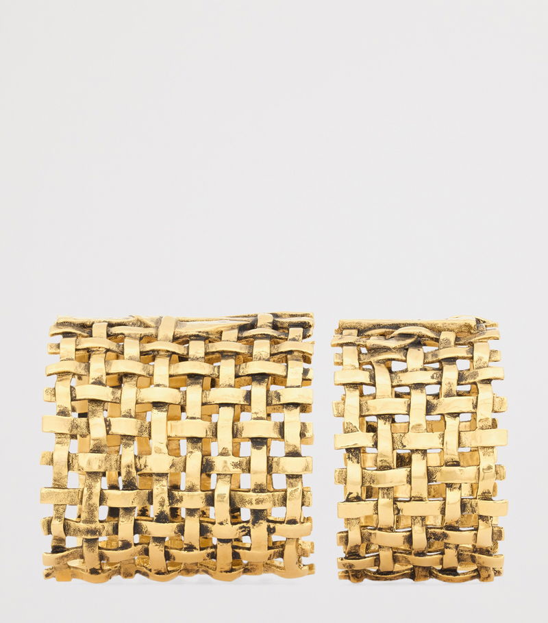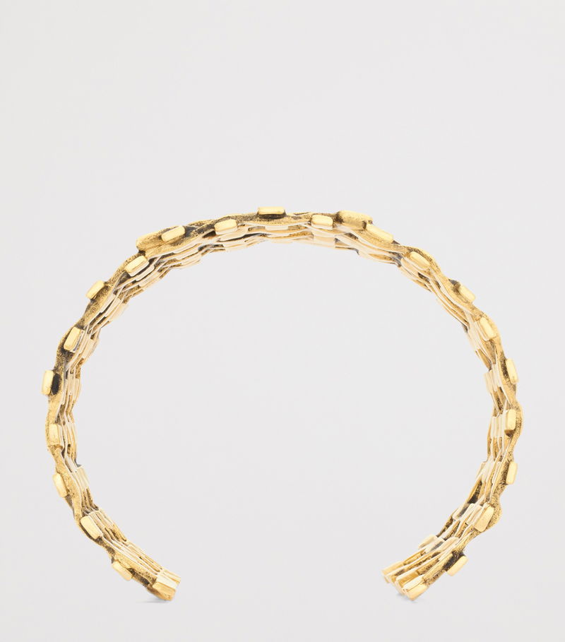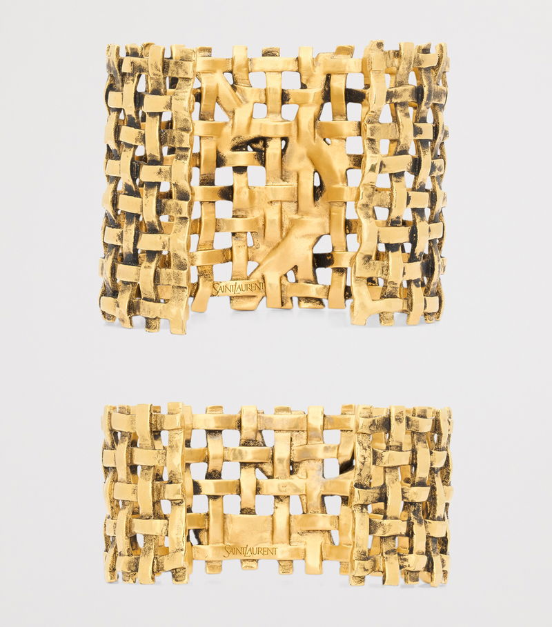 Revered for its refined canon of accessories, Saint Laurent impresses once more with this set of bracelets. Imagined with hammered finesse, these slip-on cuffs are defined by an open weave, calling to the Maison’s reverence for craft. Crowned by the signature Cassandre logo, this duet features two different widths, allowing you to customise with ease.