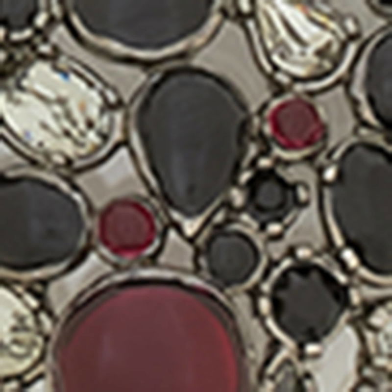 Suspended from a silver-tone chain, the bejewelled pendant features a cluster of resin and glass cabochons, each radiating subdued, sophisticated hues that speak to the Maison’s enduring depth of design and character.