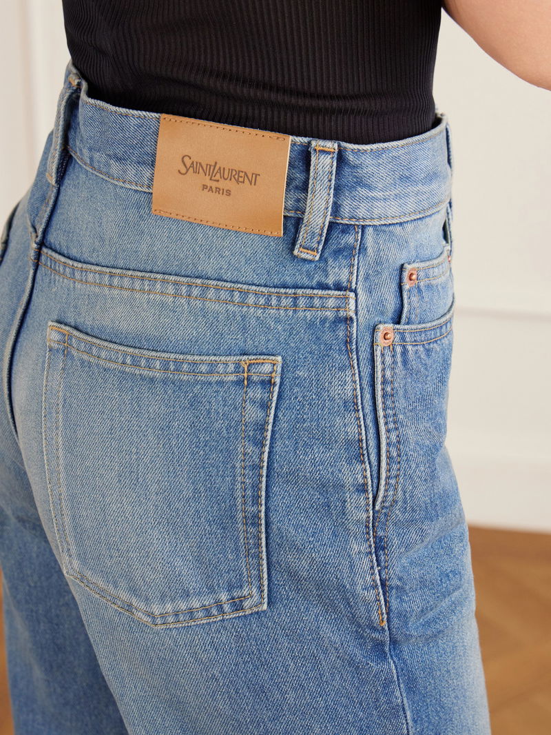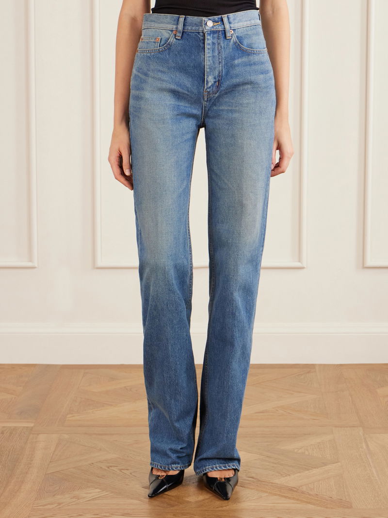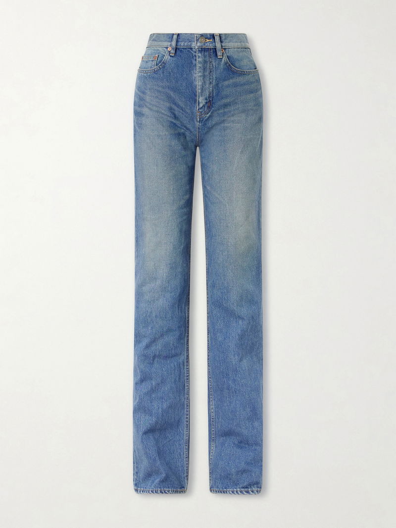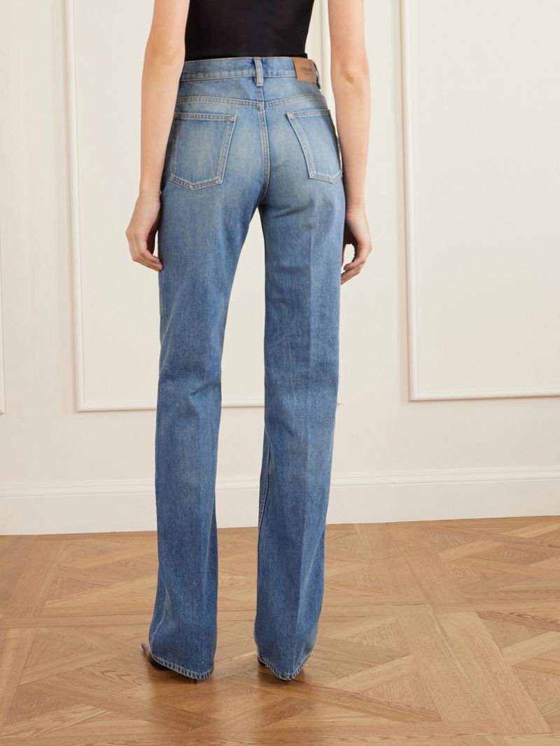 SAINT LAURENT’s jeans are an extension of the house’s prized tailoring. Cut from denim that’s whiskered and faded to look authentically lived-in, they sit high on the waist before flaring slightly to bootcut legs.