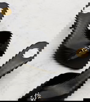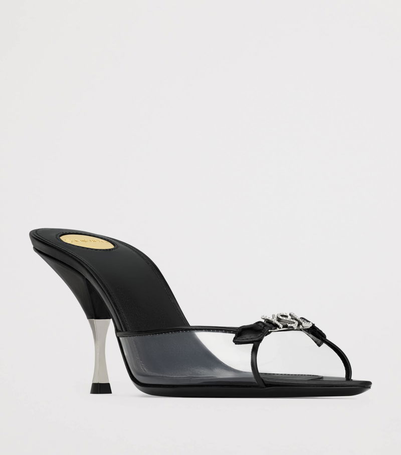 It’s impressive how, with minimal lines, Saint Laurent manages to draw designs that effortlessly command attention and glamour. The Jerry heeled mules are a shrewd showcase of that mastery by marrying a sculptural base with slender toe straps that culminate with a crystal-embellished logo.