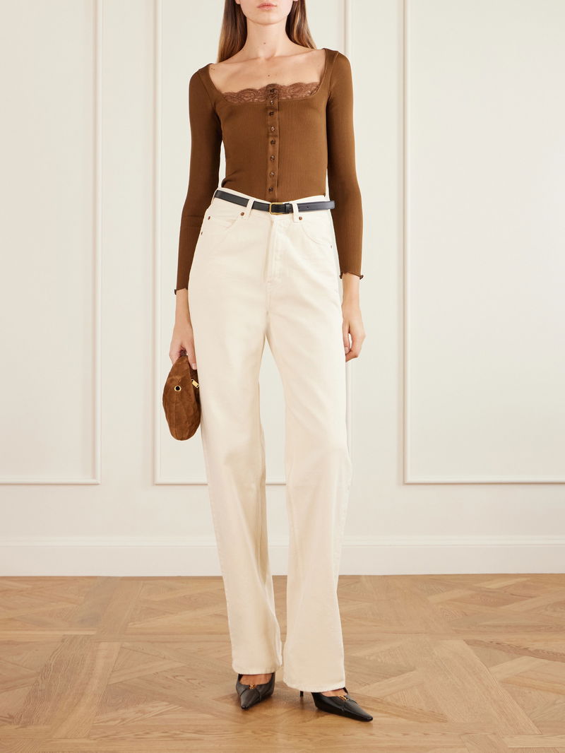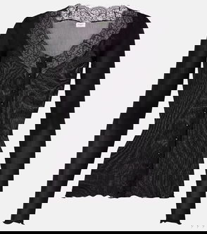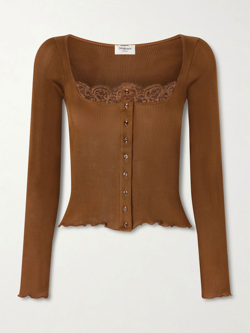 Lace-trimmed Ribbed Silk-jersey Cardigan